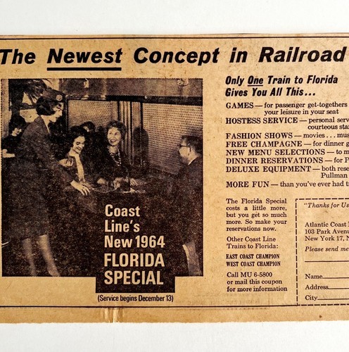 Atlantic Coast Line Railroad Advertisement 1963 Train Florida DWDD17