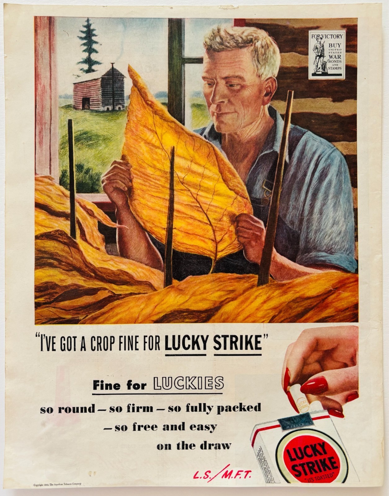 1944 Lucky Strike Cigarettes Advertisement WW2 War Bonds Tobacco Leaves E90E2