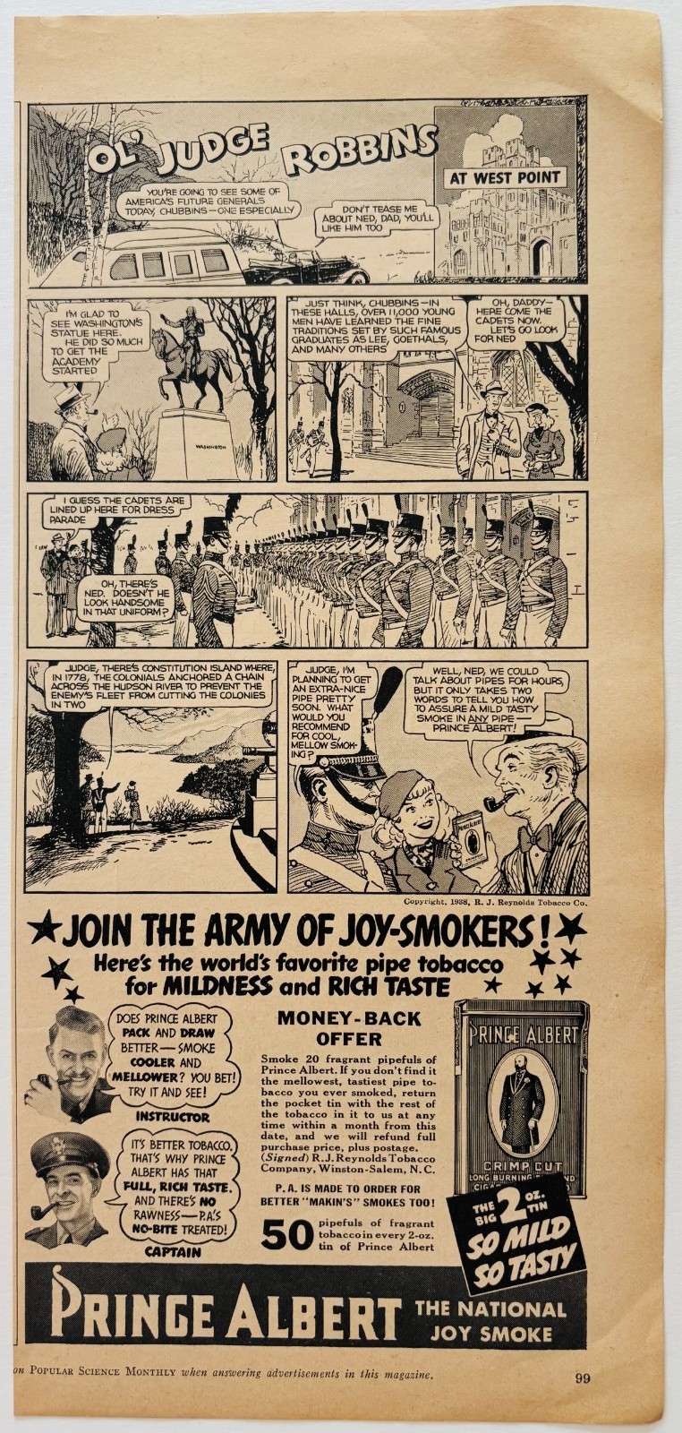 1938 Prince Albert Pipe Tobacco Advertisement Ol Judge Robbins Comic Strip E90F2