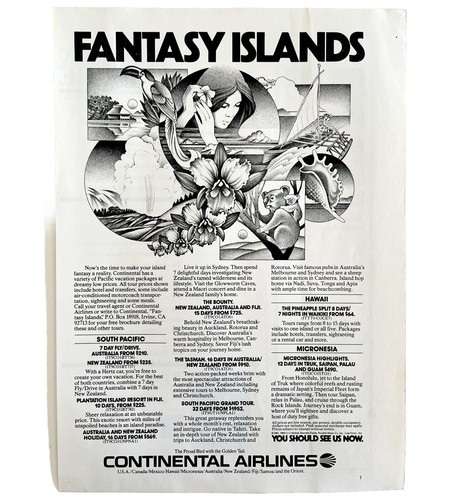 Continental Airlines 1979 Advertisement Aviation Fantasy Islands Vintage DWKK6