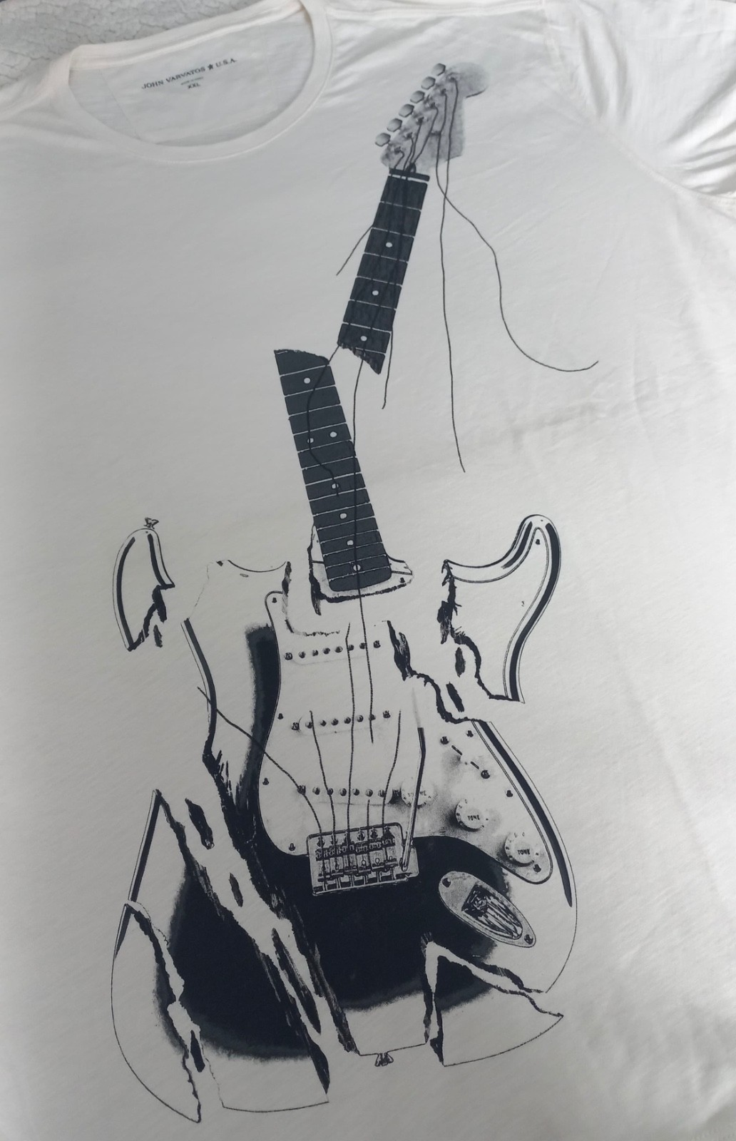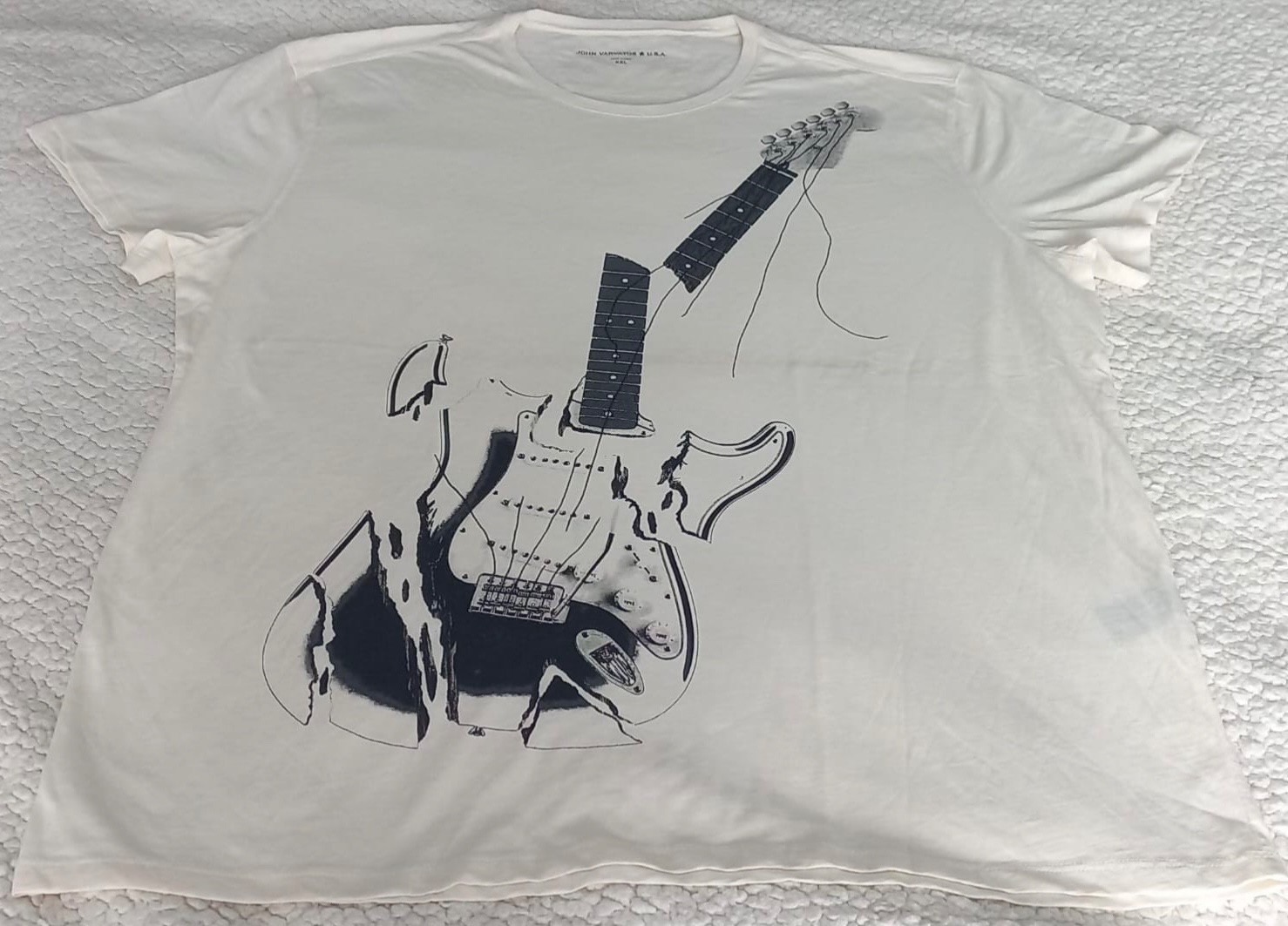 John Varvatos Star USA Men's Stone Wash Ivory Broken Guitar Graphic T-Shirt XXL