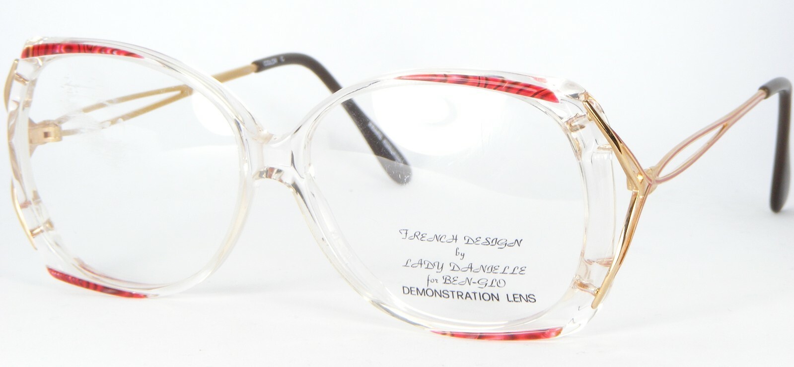 BEN-GLO B.G. Lady Danielle #8 C CLEAR /RED /GOLD EYEGLASSES GLASSES 54-12mm