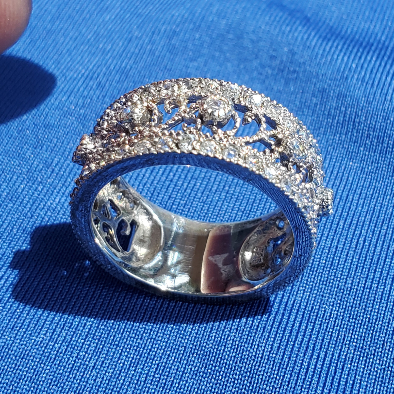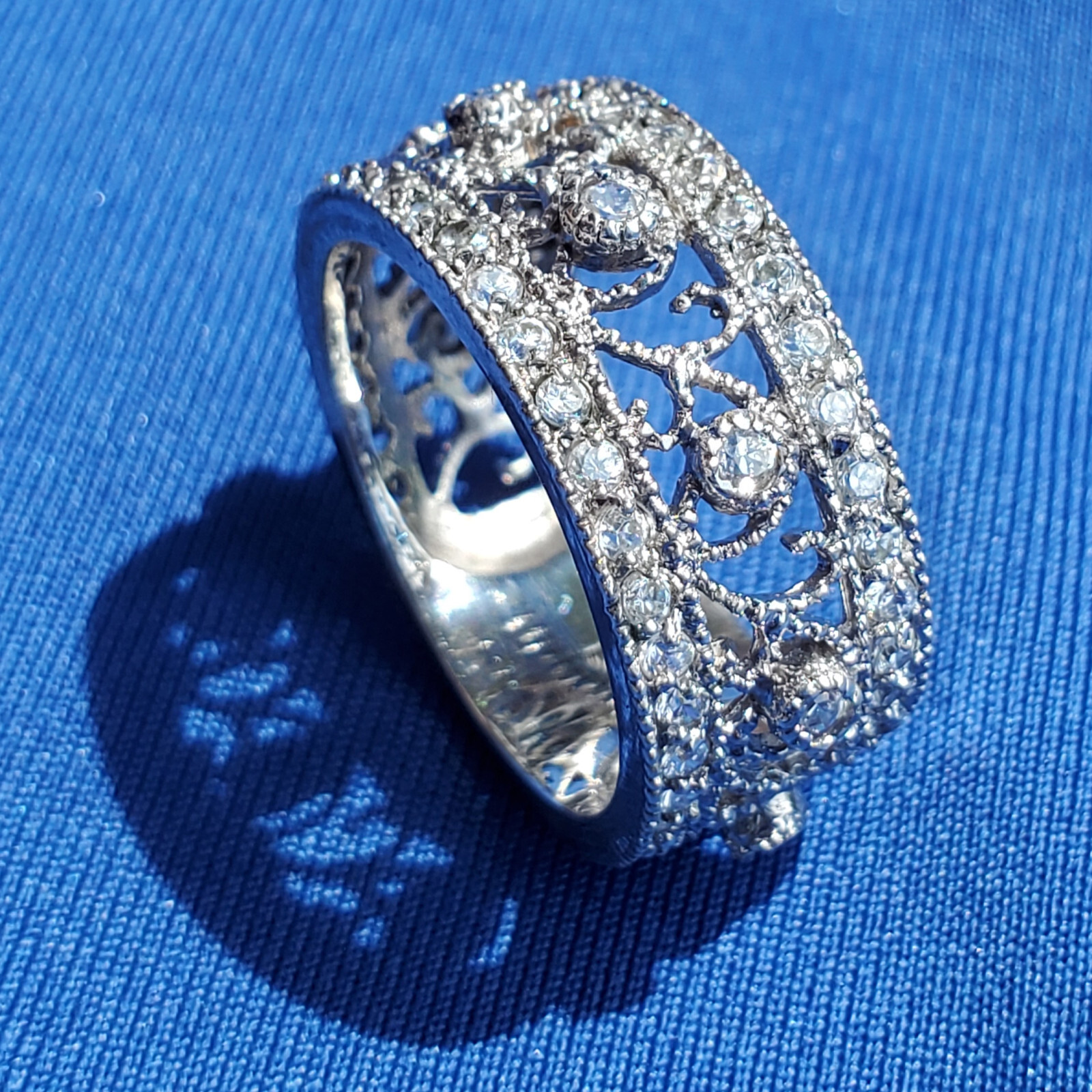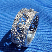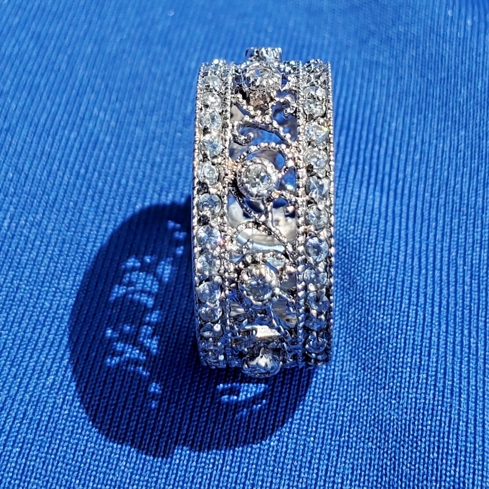 Sterling Silver DESIGNER White CZ Filigree Wedding Band Bridal Ring Size 7.75