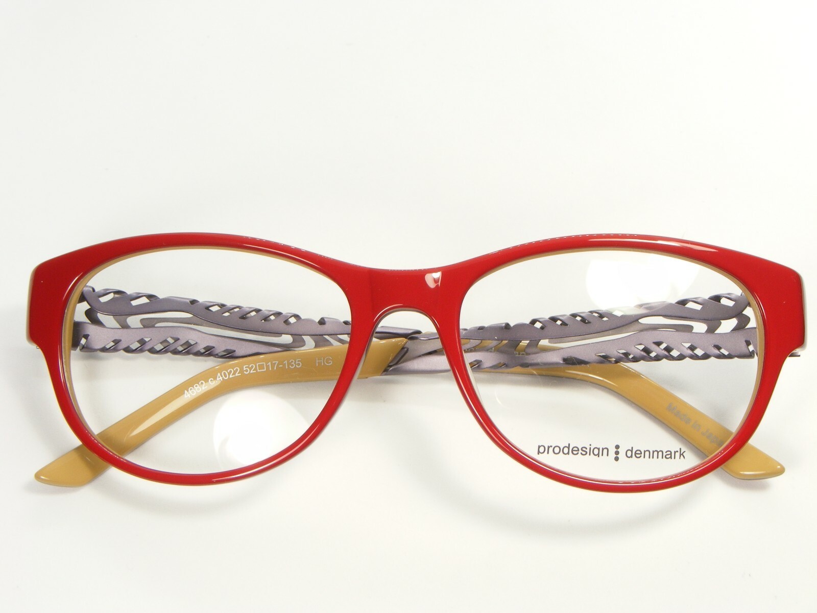 Neuf Prodesign denmark 4682 4022 Brillant Rouge Lunettes Monture 52-17-135mm