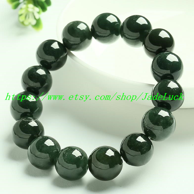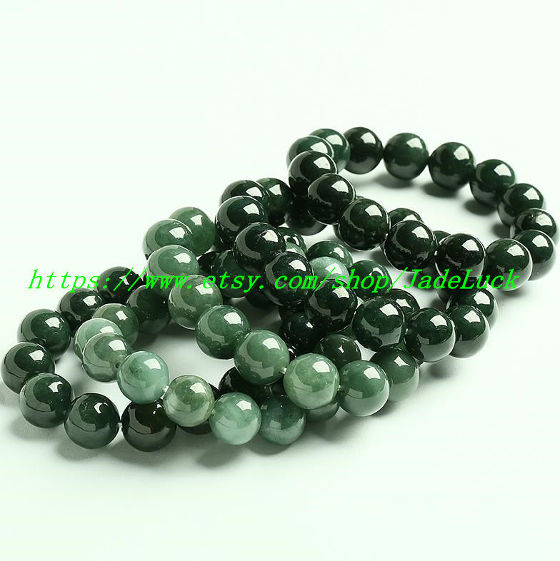 AAA grade 12 mm , 100% pure natural dark green jade beaded bracelet charm