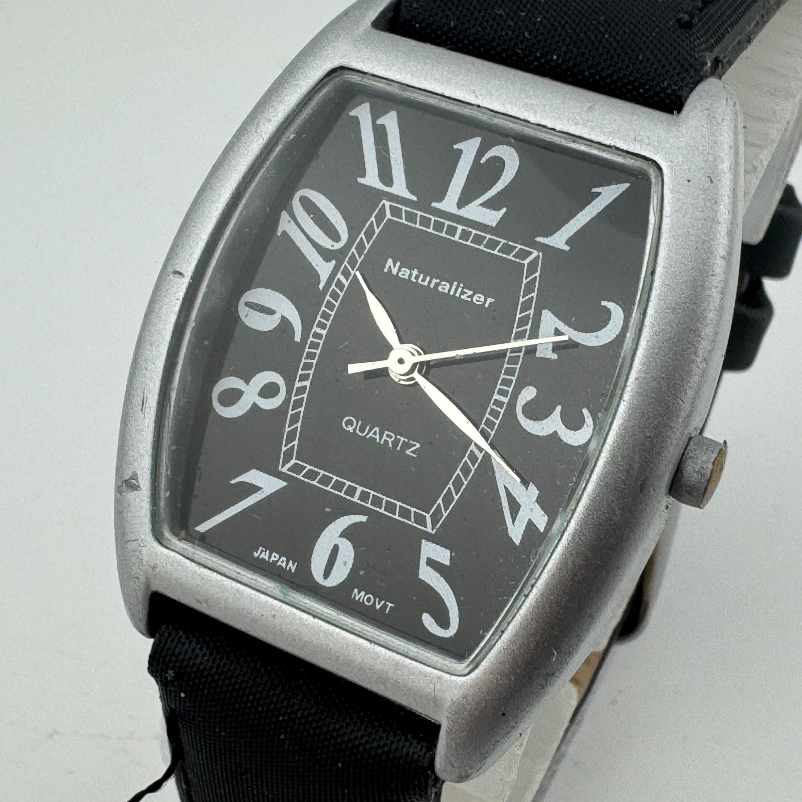 VTG Naturalizer Quartz Watch Men Silver Barrel Leather Japan Analog New Battery