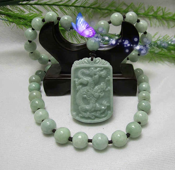 8MM natural hand-carved jade dragon "AAA" beaded necklace