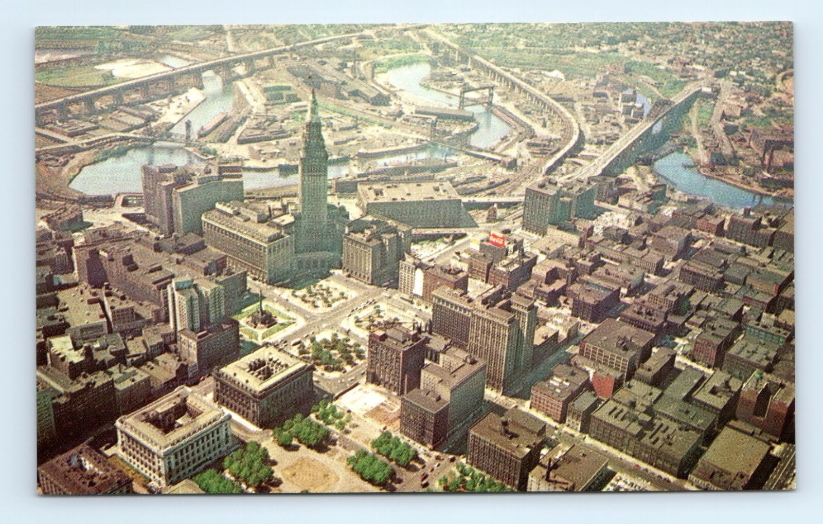 Cleveland Ohio Aerial City View Postcard