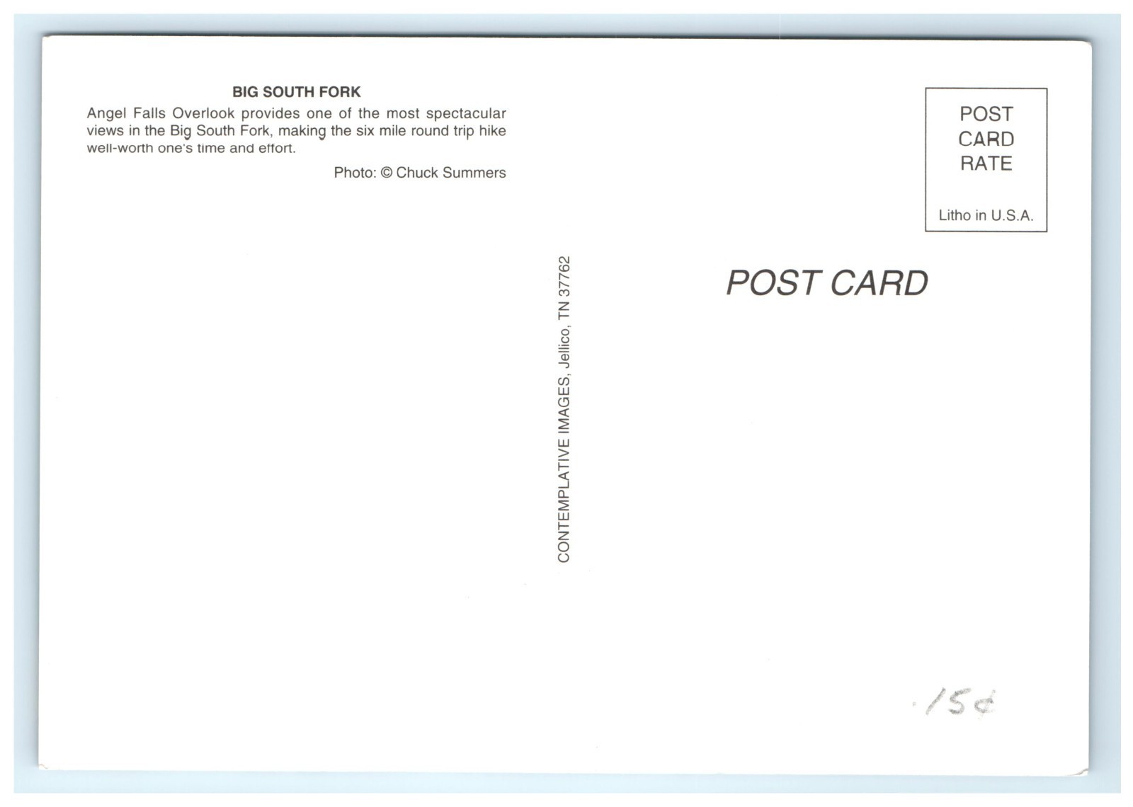 This postcard features the breathtaking Angel Falls Overlook in the Big South Fork National River and Recreation Area. Showcasing stunning panoramic views of rugged cliffs, dense forests, and cascading waterfalls, the postcard captures the natural beauty and adventurous spirit of this scenic Appalachian region. It highlights one of the Big South Fork?s most iconic overlooks, offering a vivid glimpse into the outdoor recreational opportunities and pristine landscapes of eastern Tennessee and Kentucky.