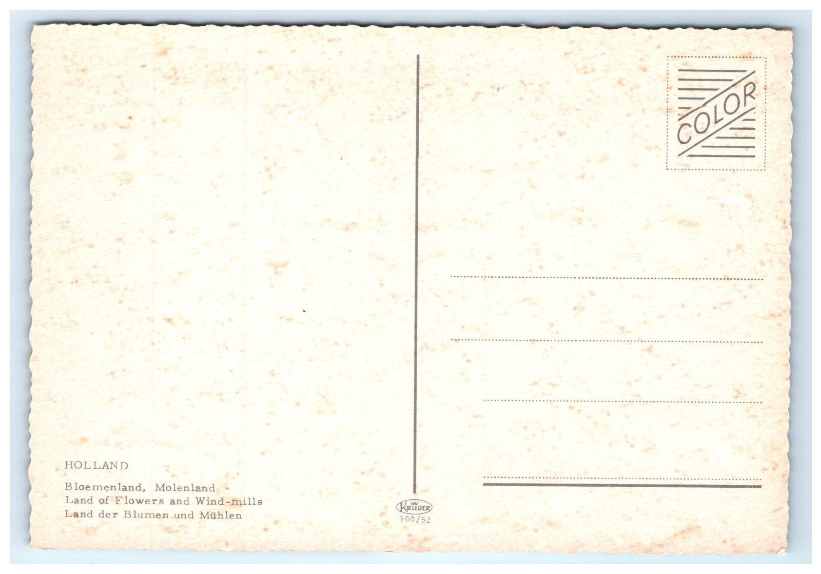 Land Flowers Windmills Holland Bloemenland Molenland Postcard