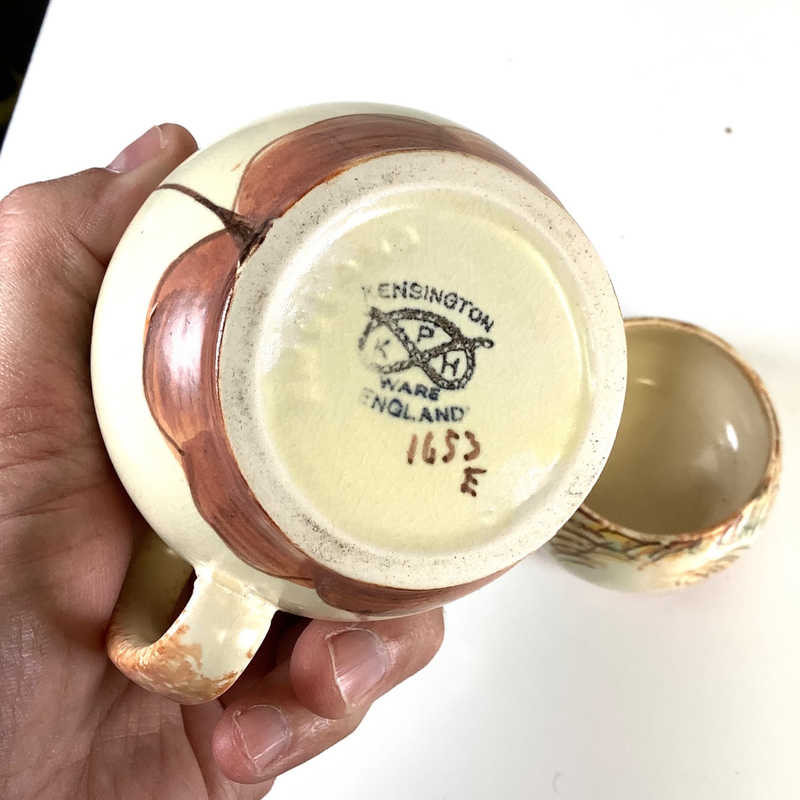 Kensington Ware KPH Hanley Creamer Sugar Set Hand Painted England 1922-37 Cottage Core Arts Crafts. Good condition with no chips or cracks. Creamer measures approximately 3.25 inches high by 4 inches wide. Please see all photos