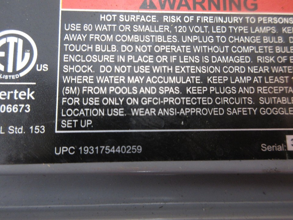 LUMINAR CNC MILL WORK LAMP LIGHT LED 6000 LUMEN 120VAC 58487 UPC 19317544025