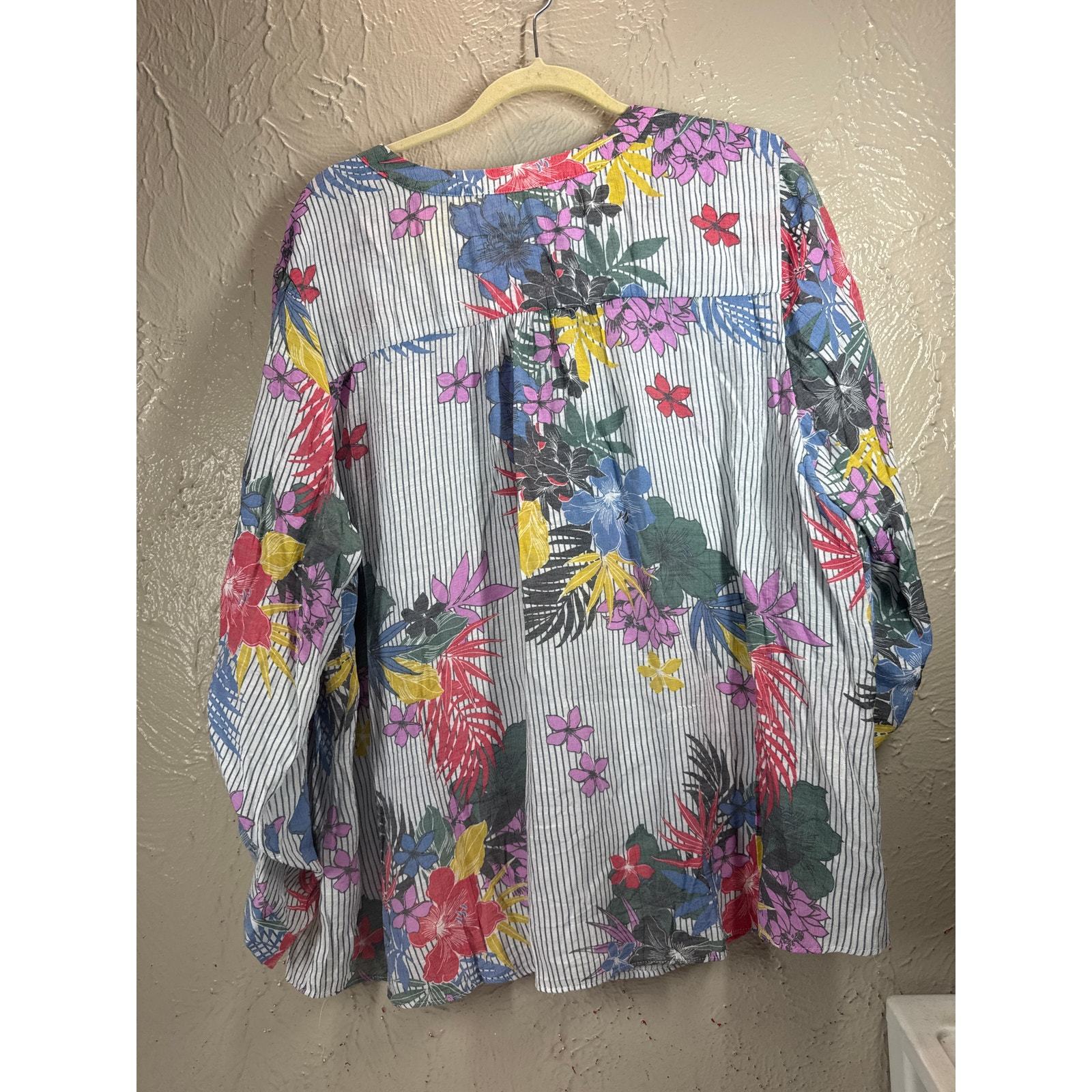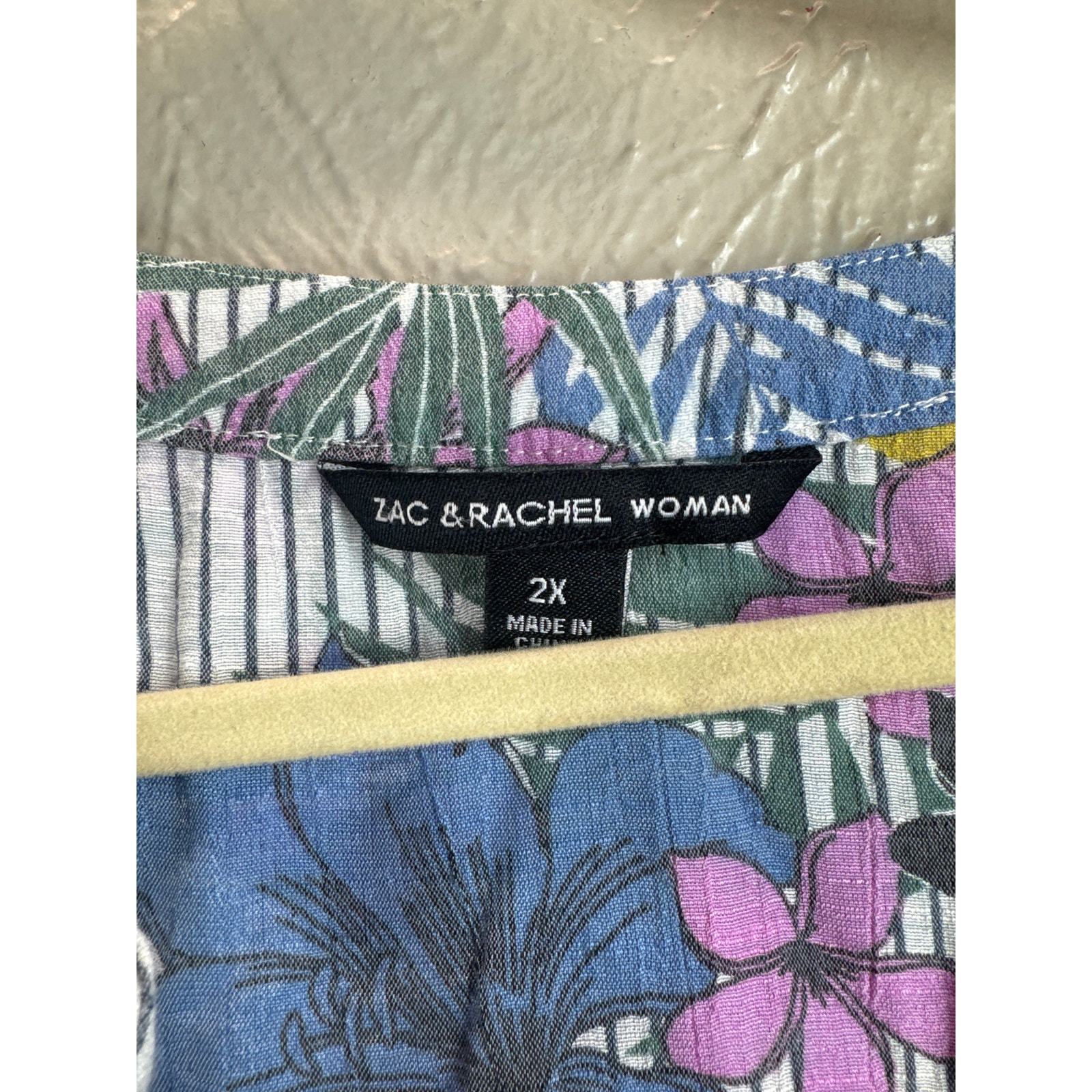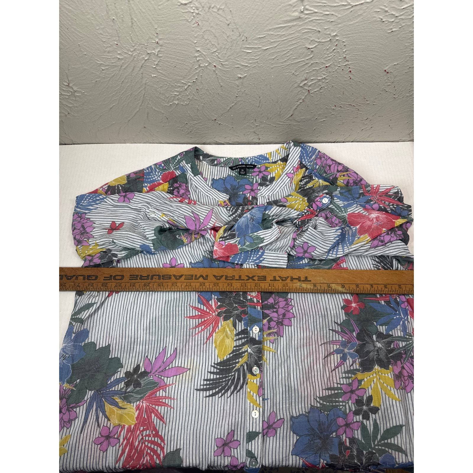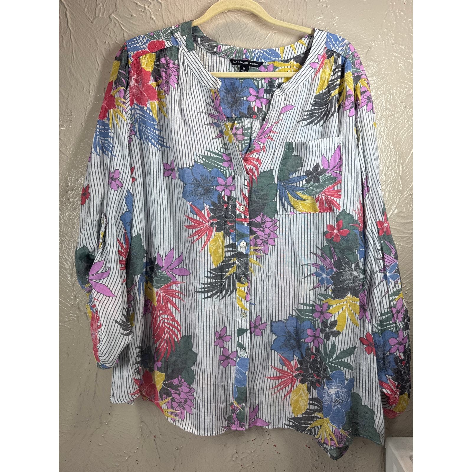 Zac Rachel Woman Floral Button Down Womens Top Striped Shirt Blouse Size 2X