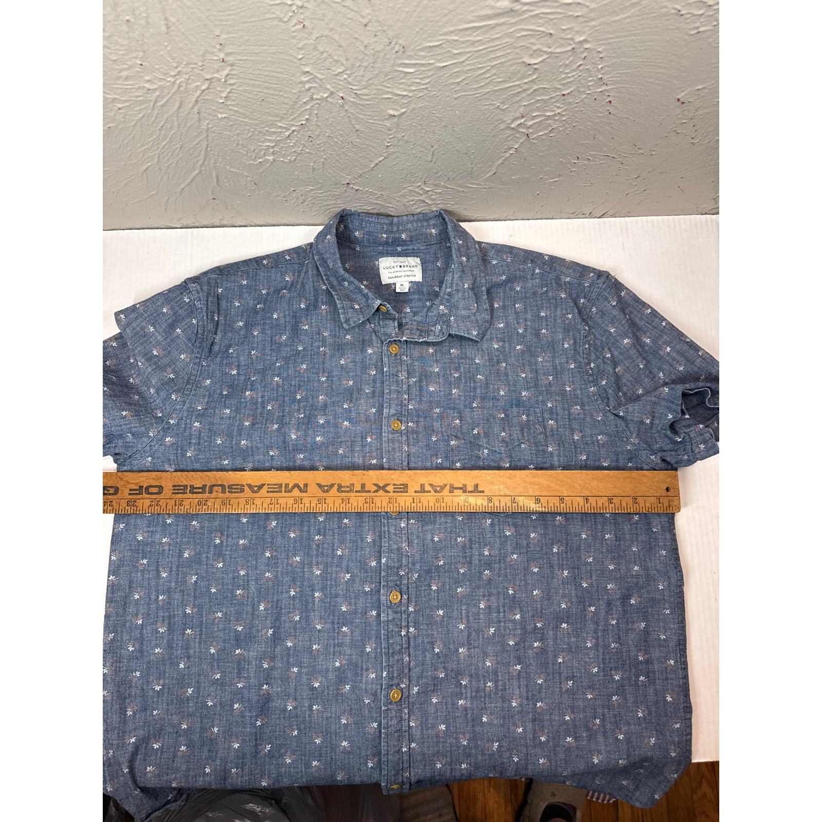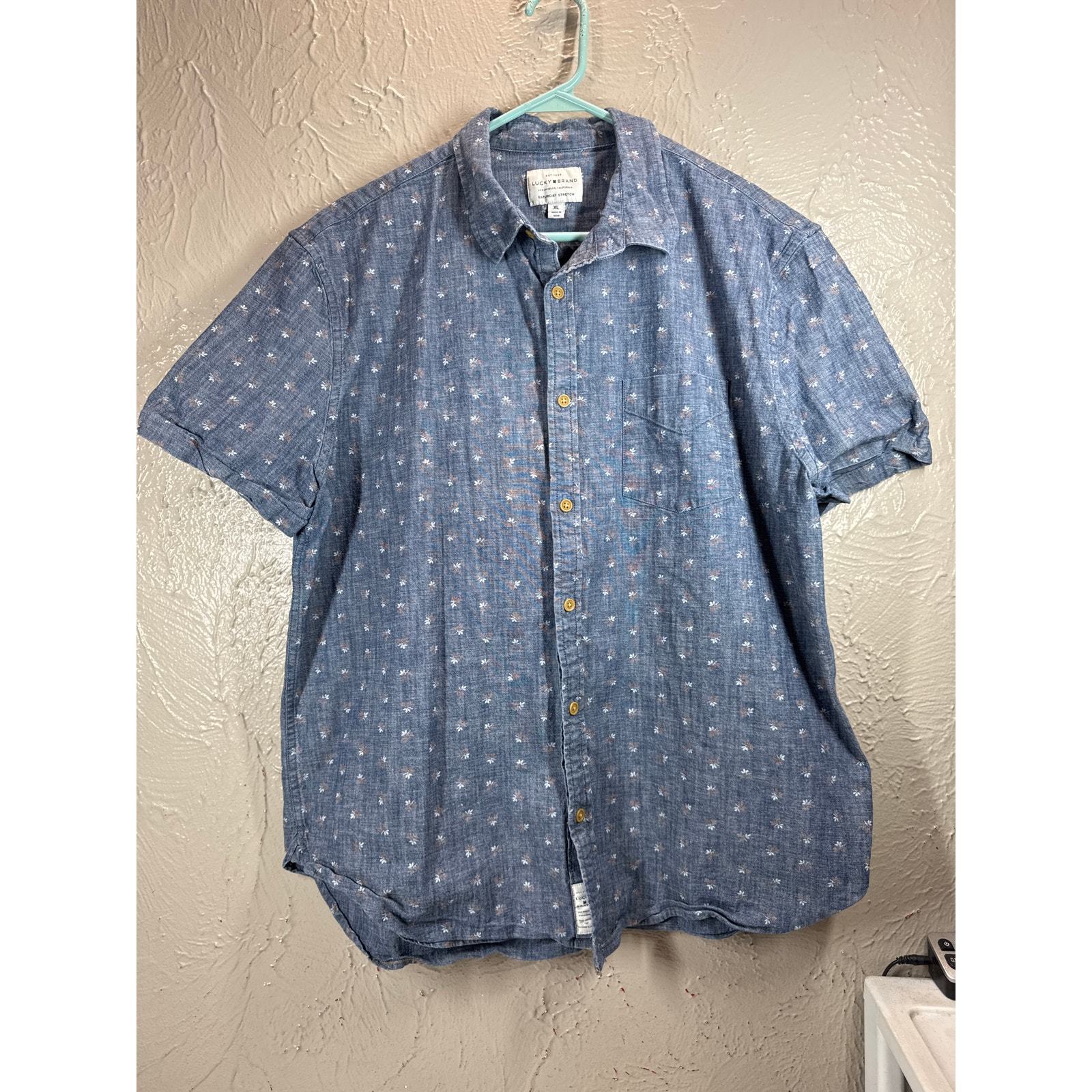 Lucky Brand Shirt Mens Blue Saturday Stretch Button Up Chambray Slim Fit Size XL
