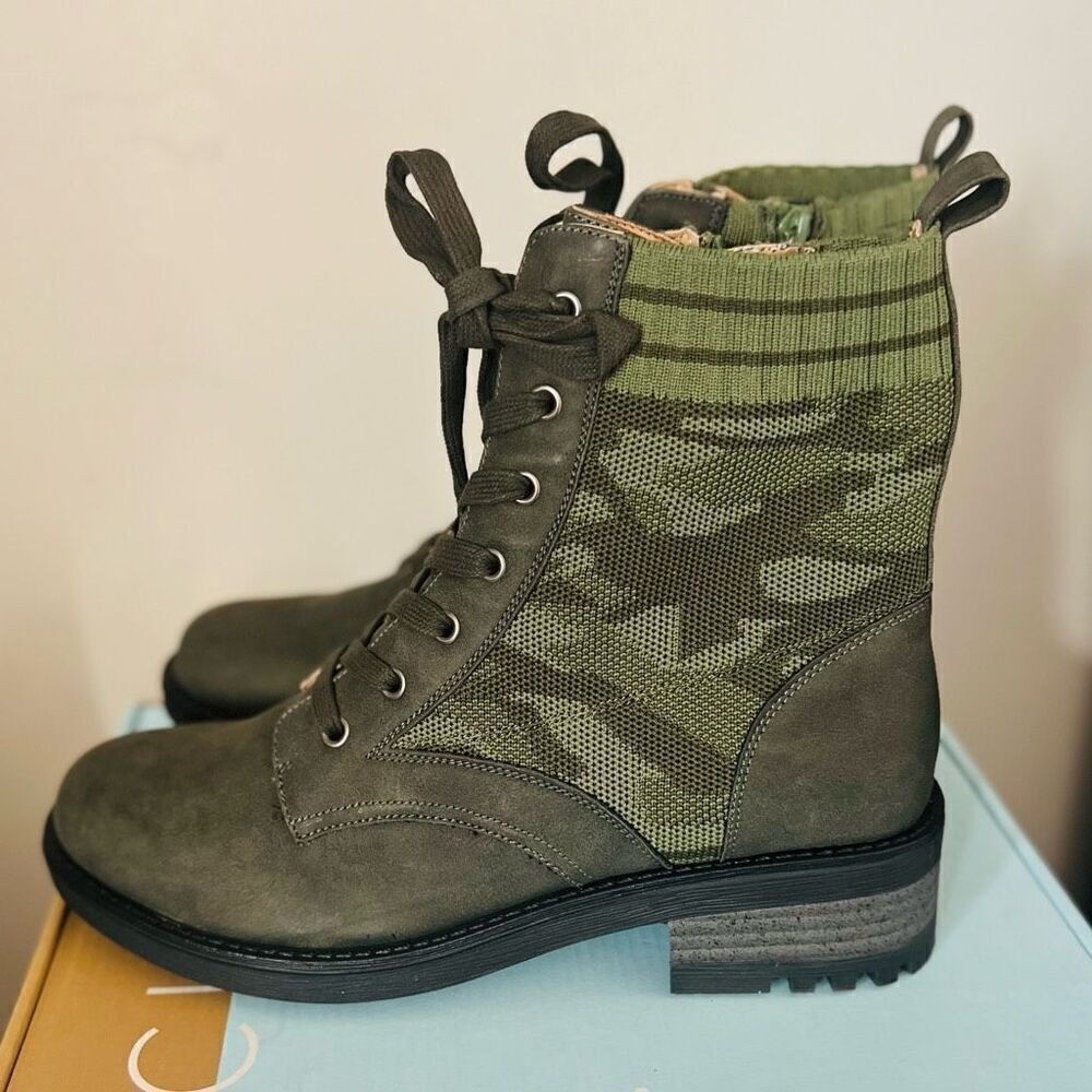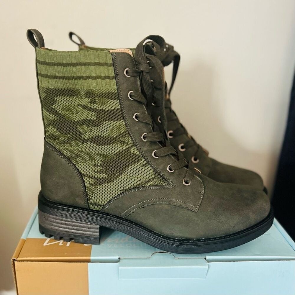 LIFESTRIDE Knockout Lace-Up Combat Boot, Comfort Boot, Green Olive, Size 8, NWT