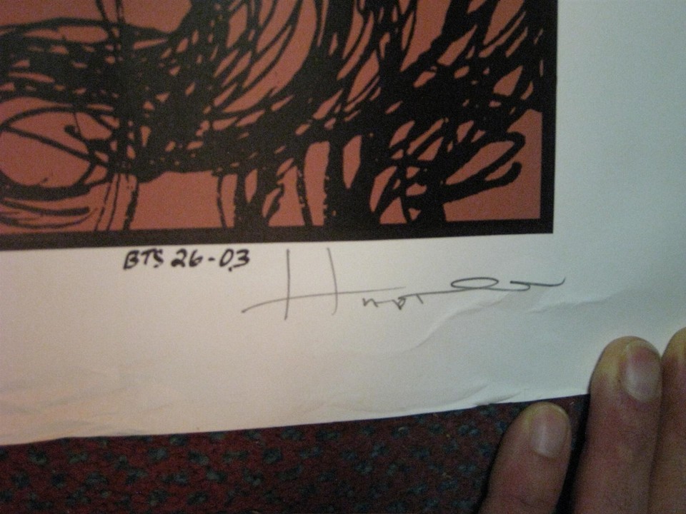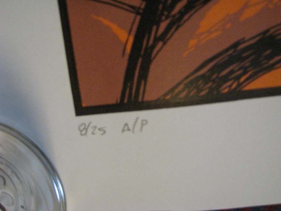 This concert poster is 24 inches by 28 inches approximately.. It is not in mint condition. It has edge dings, creases, ruffling. It is signed and numbered by the visual artist. It is an artist proof 8 of 25. B133