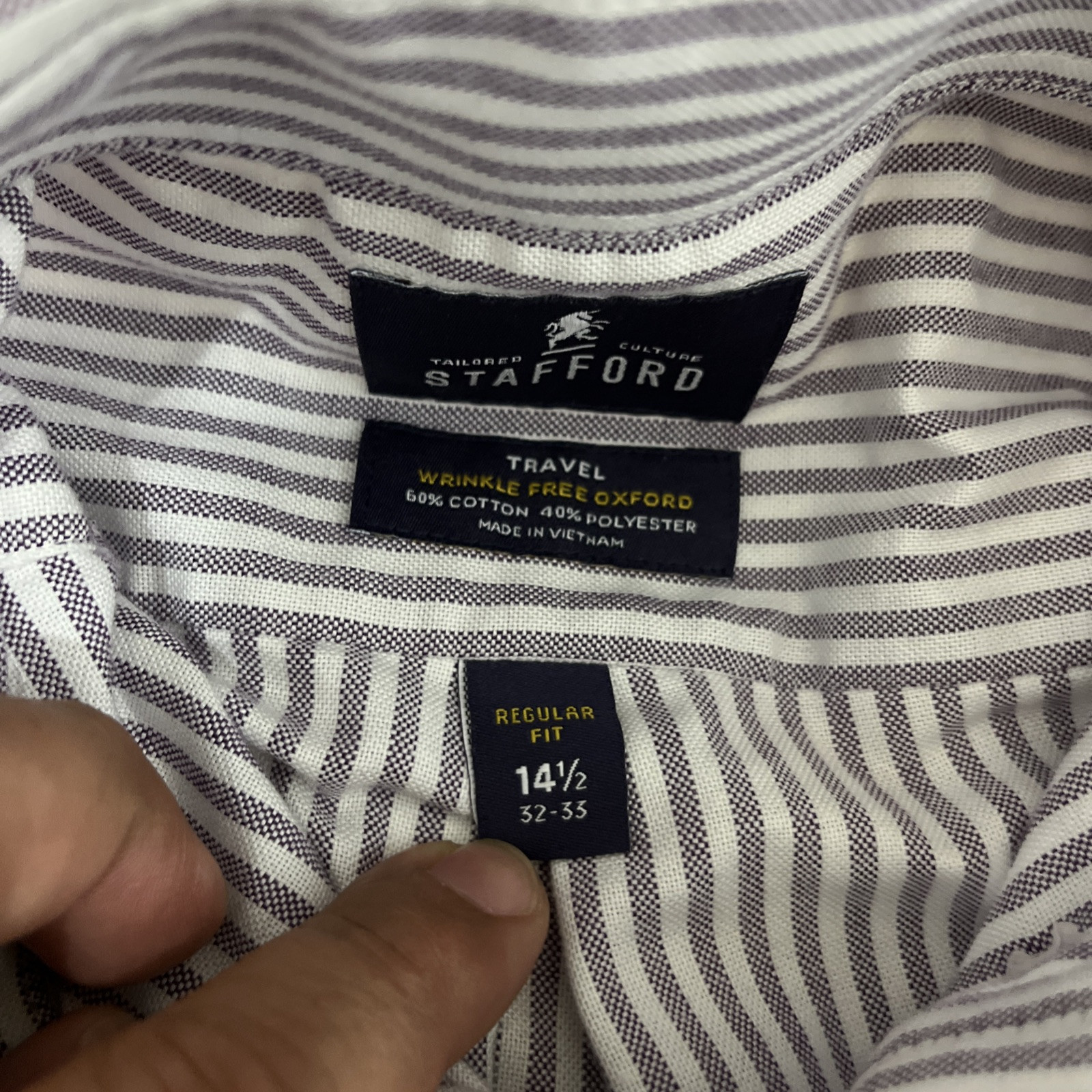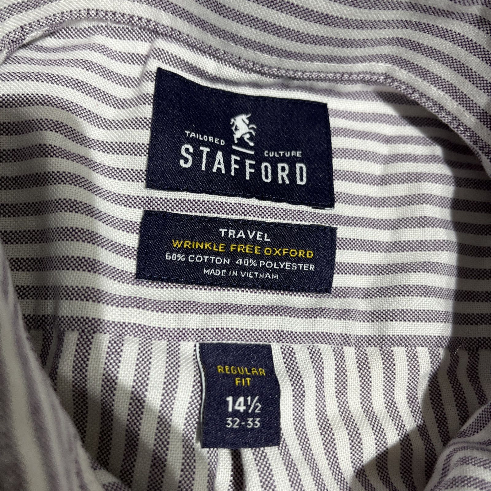Stafford Dress Shirt Mens 14.5 32/33 Regular Fit Travel Wrinkle Free Oxford