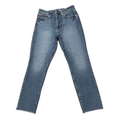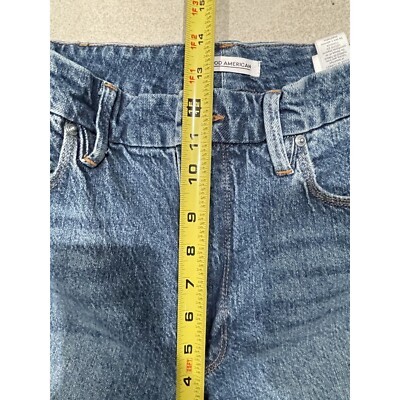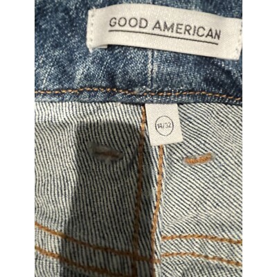 Good American Womens High-Rise Blue Distressed Frayed Hem Jeans Sz 14/32 GL386T