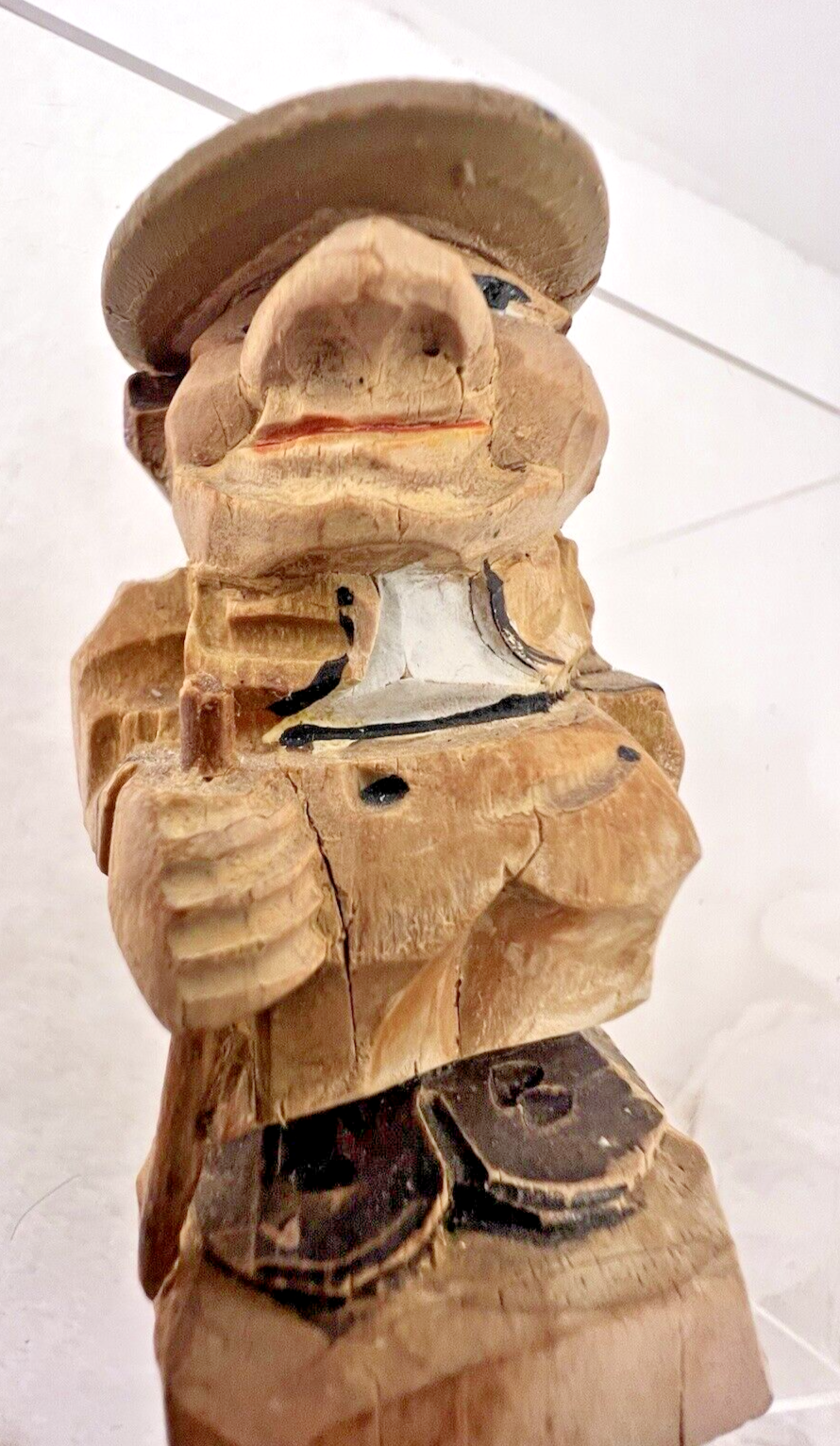 Folk Art Hand Carved Man with Hat Walking Stick 2 1/2" tall Rather Large Nose