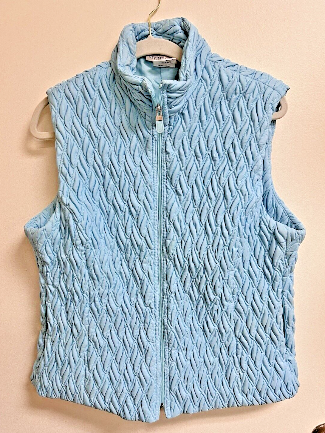 Taylor Brooke XL Light Blue Warm Quilted Vest Zip Front Good Shape