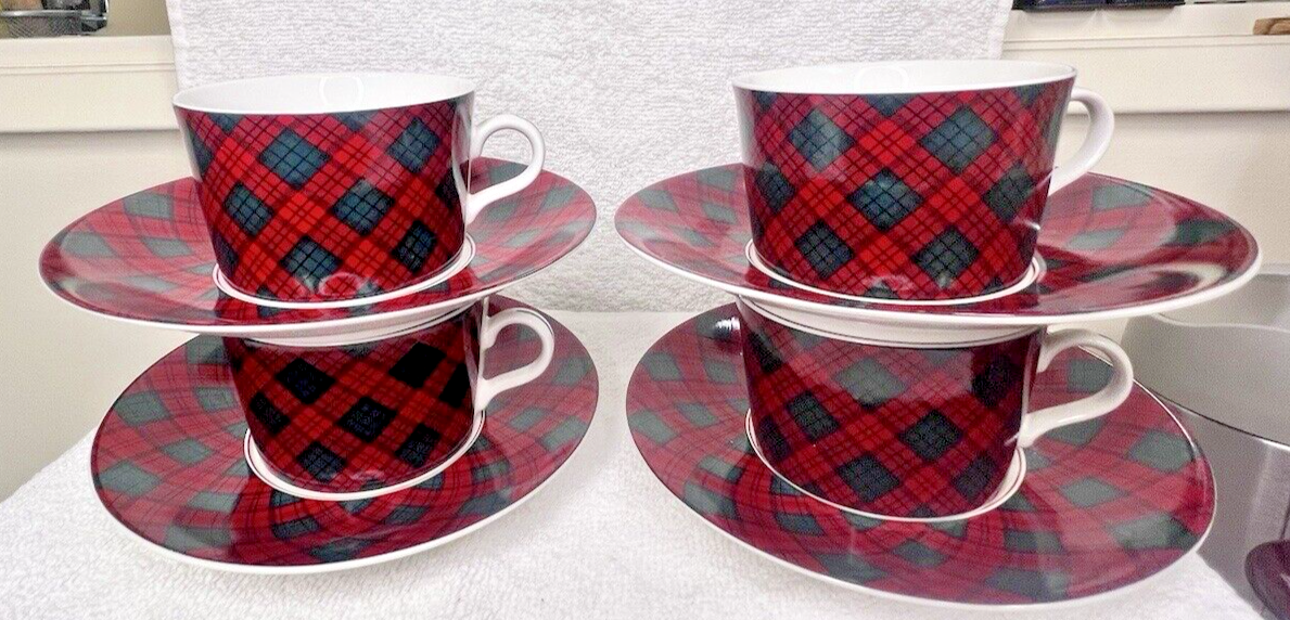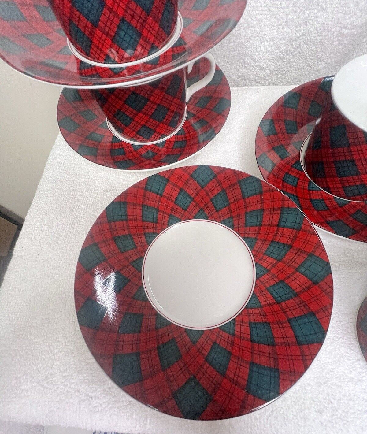 Set 4 SASAKI Tartan Plaid Cups & Saucers 8 and 12 similar items