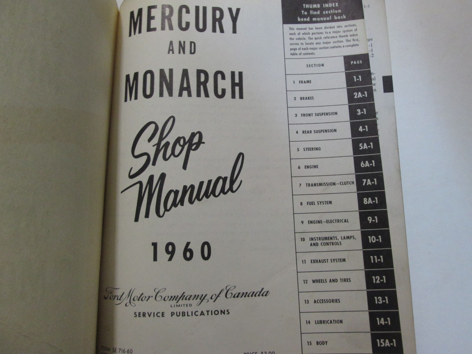 1960 Ford Mercury & Monarch Service Shop Repair Workshop Manual CDN OEM Book 60