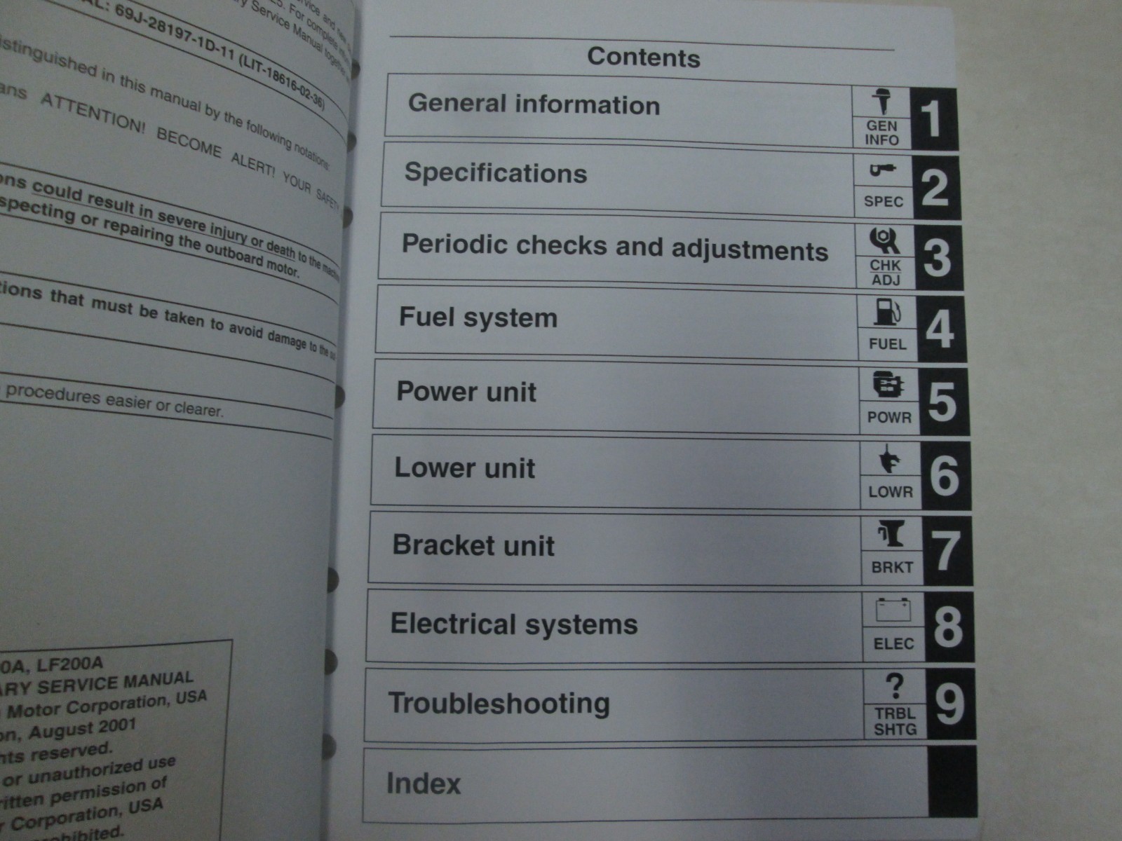 2002 Yamaha Outboard F200A LF200A Supplementary Service Manual 60L-28197-1D-1X