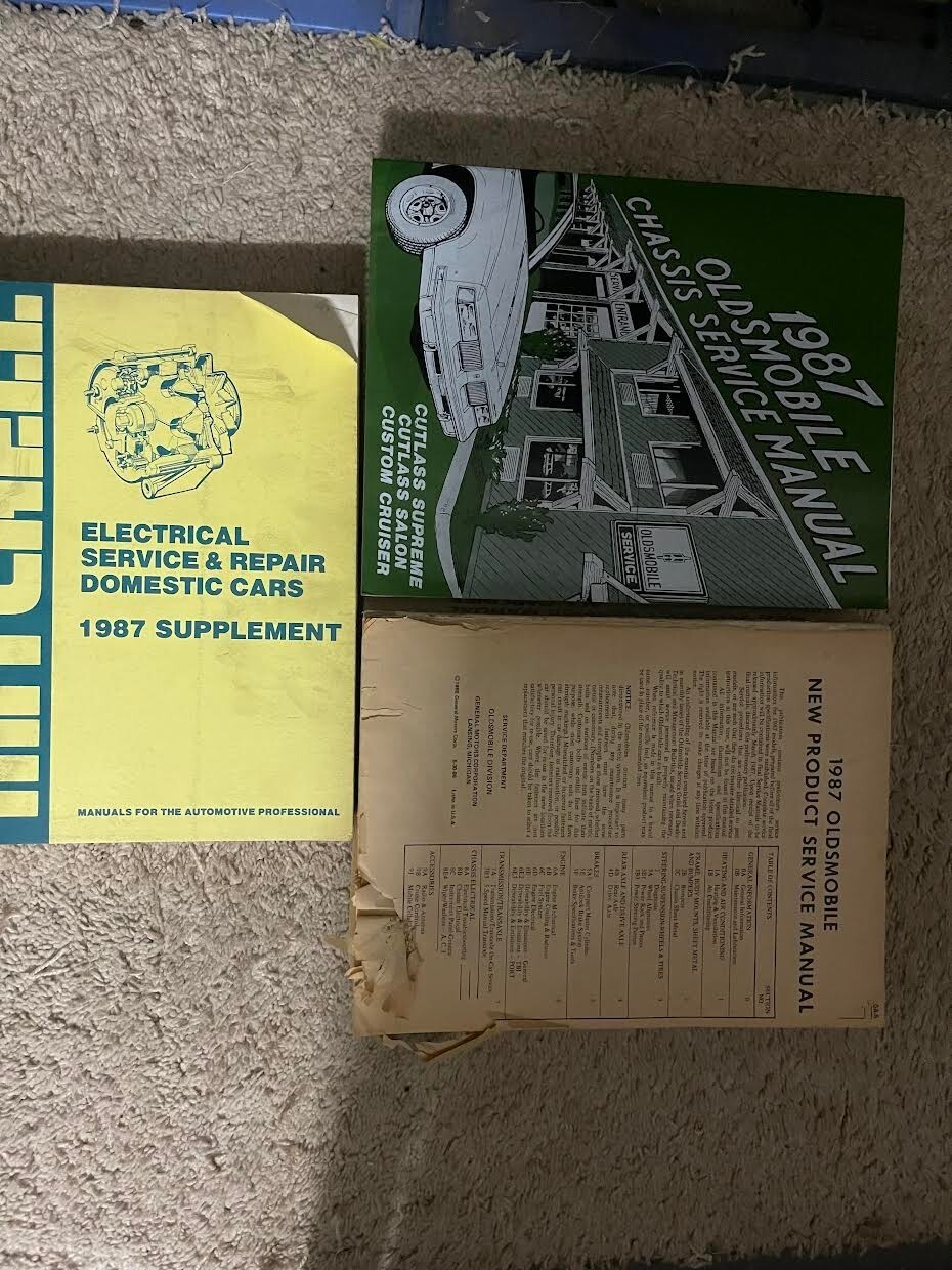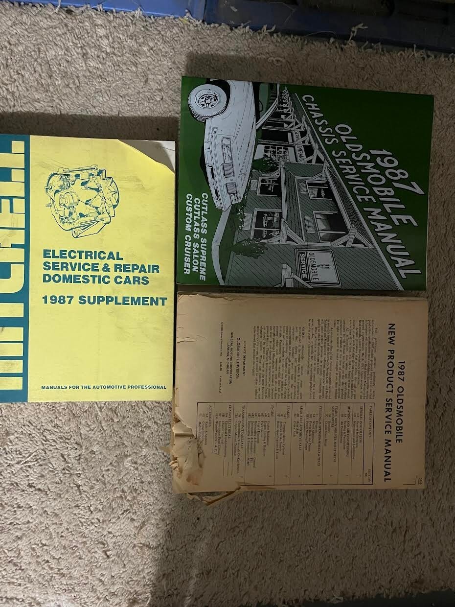 Factory 1987 Oldsmobile Cutlass Supreme Service Manual, New Product Information Manual e Mitchells Manual