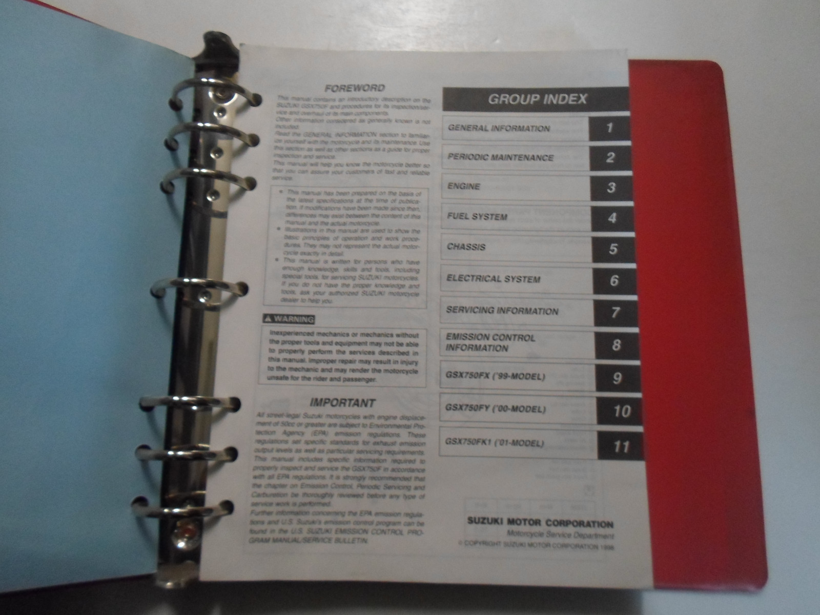 1990 1991 1992 1993 SUZUKI GSX750F SERVICE REPAIR MANUAL BINDER STAINED