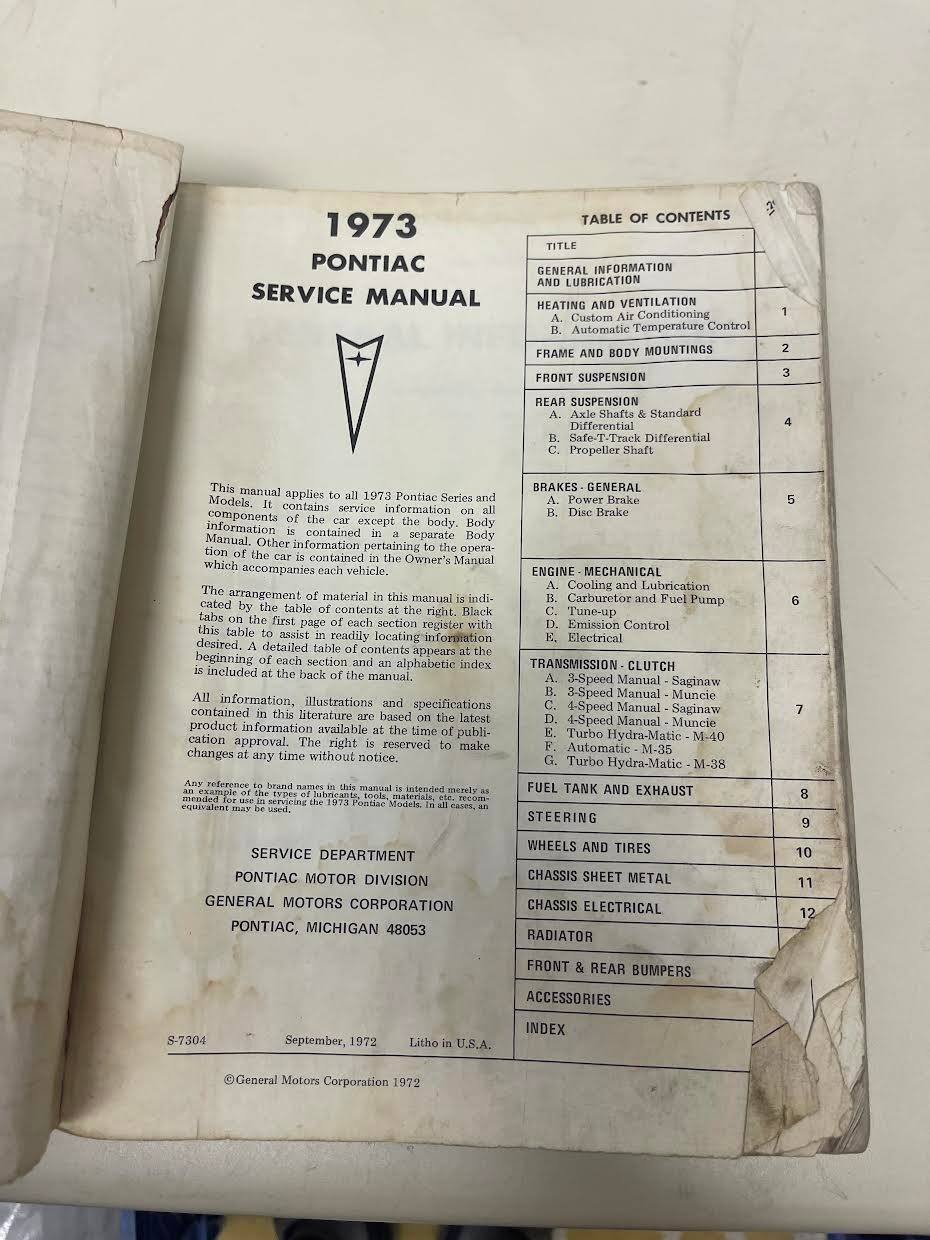 Factory 1973 Pontiac All Car Models Service Manual 1973 Chiltons Manual
