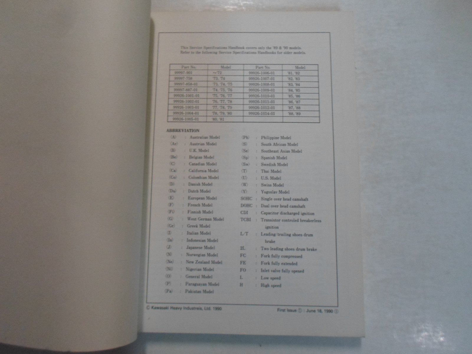 1989 1990 Kawasaki Service Specifications and 47 similar items