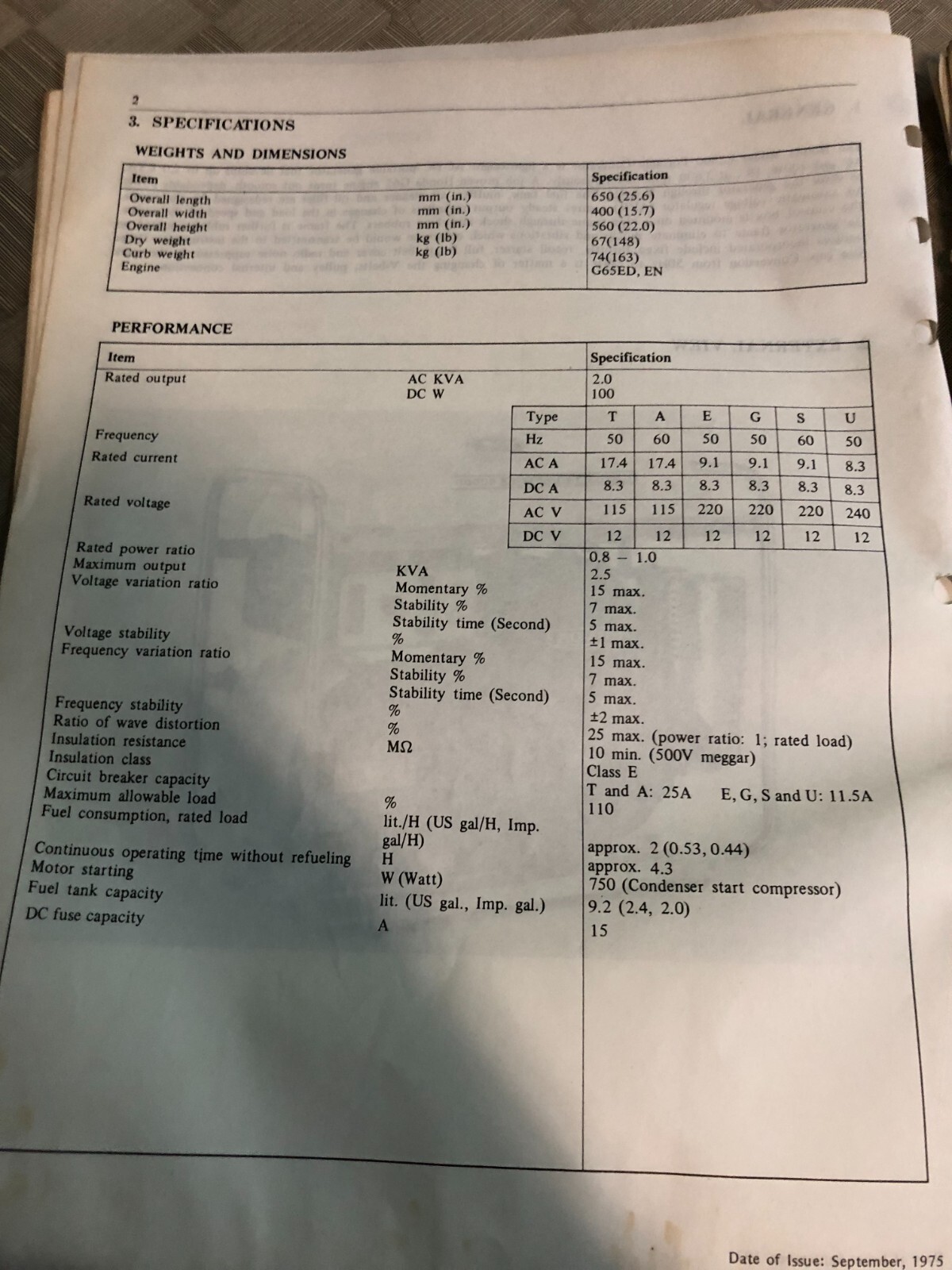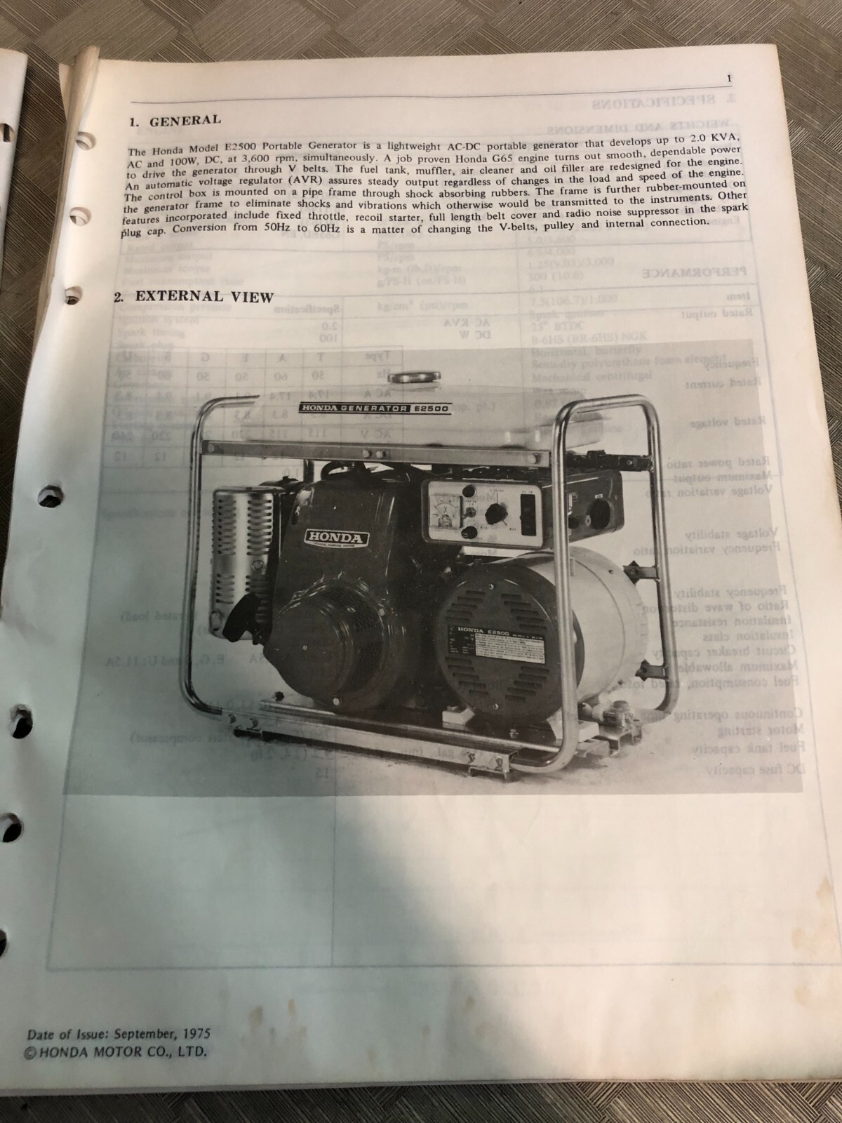 1975 HONDA E2500 AVR Model Portable Generator Service Shop Repair Manual
