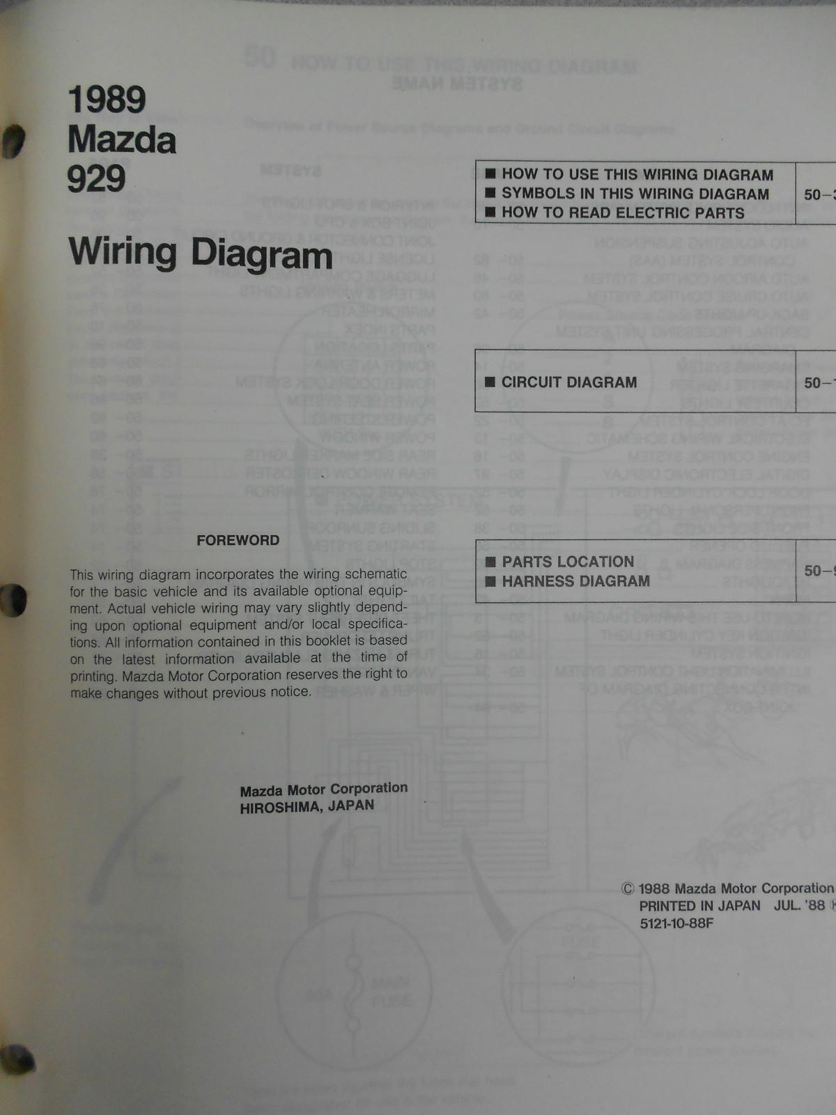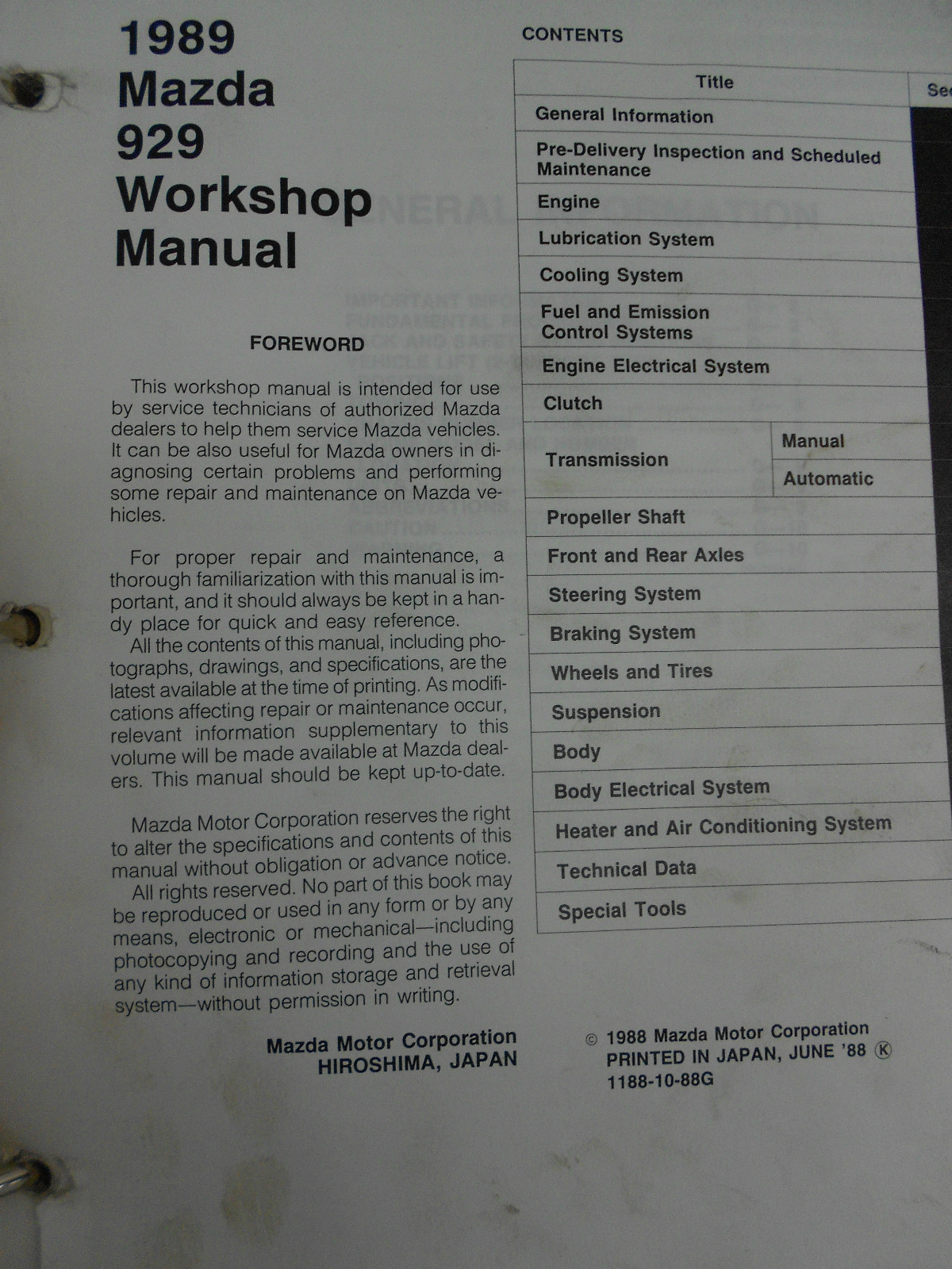 Manuale Di Servizio E Riparazione OEM Mazda 929 Del 1988