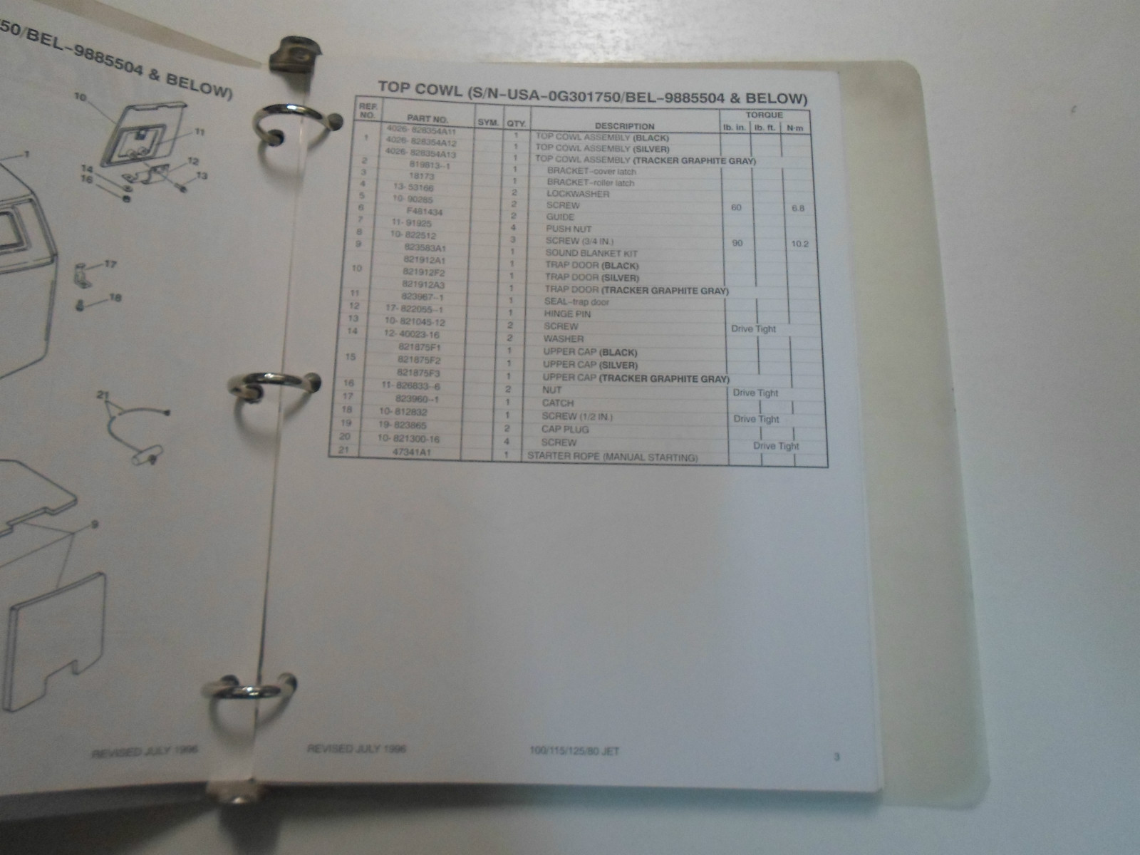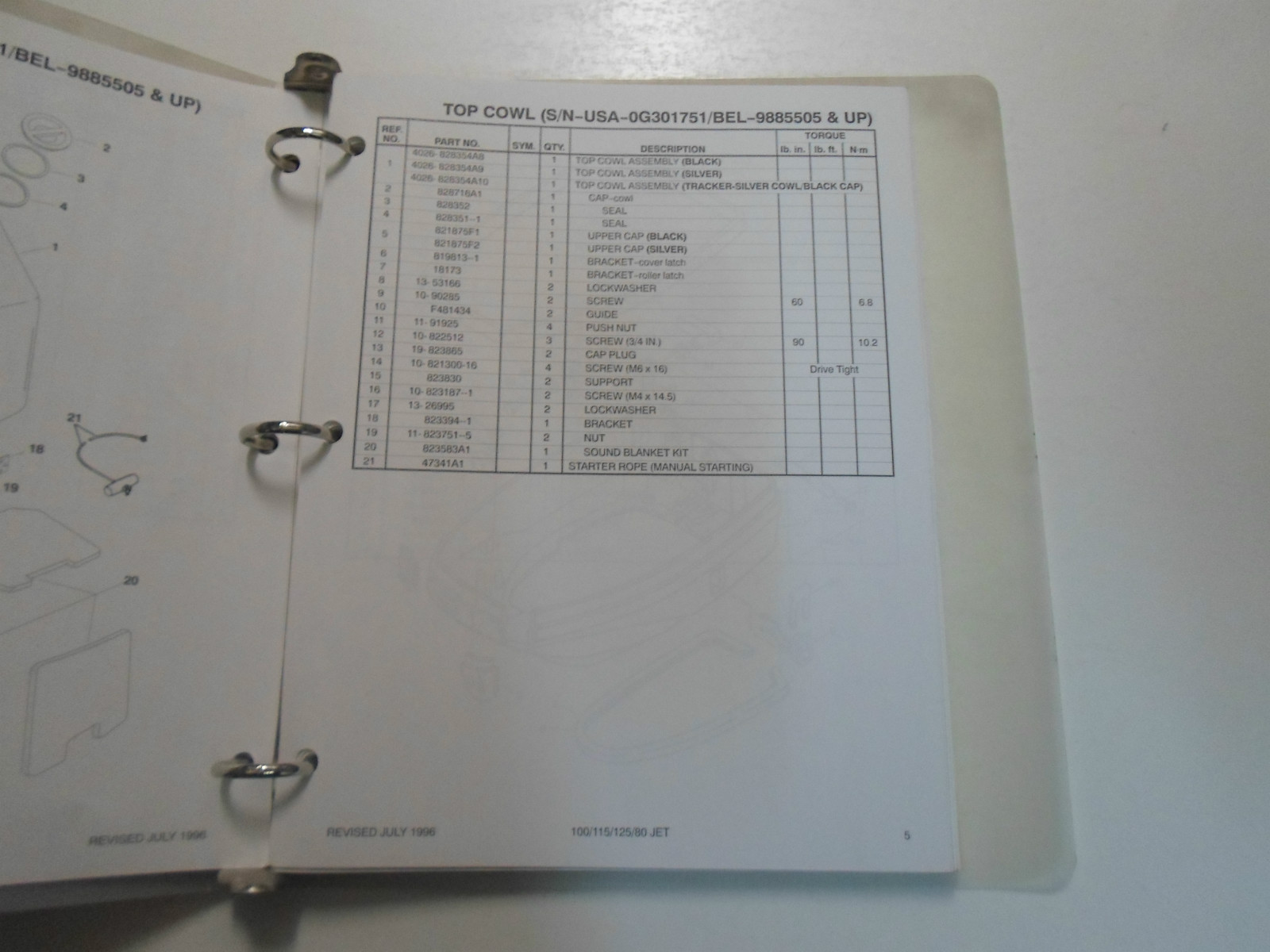 1997 Quicksilver Marine Parti e accessori 100 115 125 80 Jet Parts Catalogo Manuale