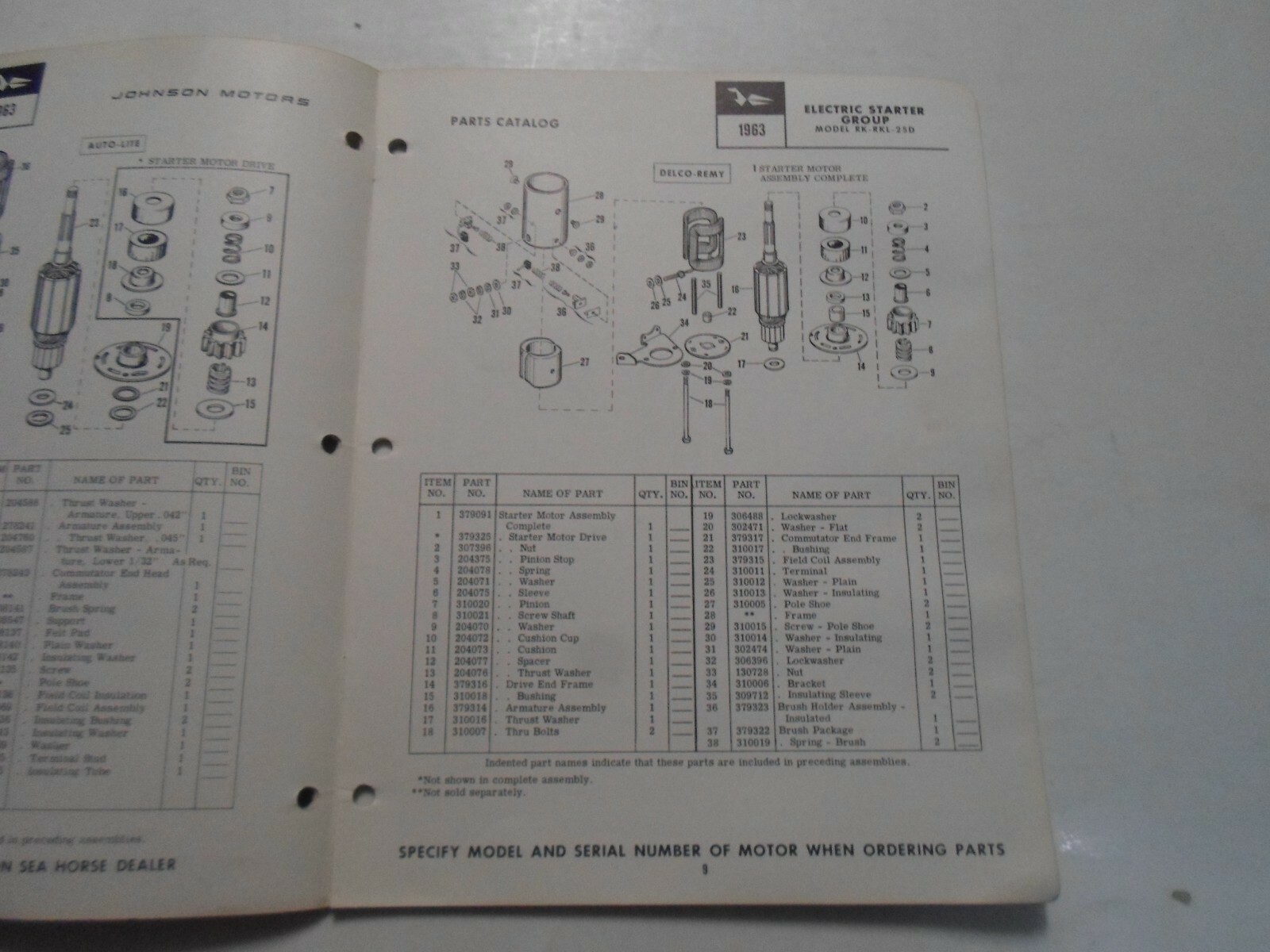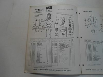 Catalogo Parti Elettrico Johnson 75 HP Sea Horse Modelli V45 V4SL 15S Acqua 1963