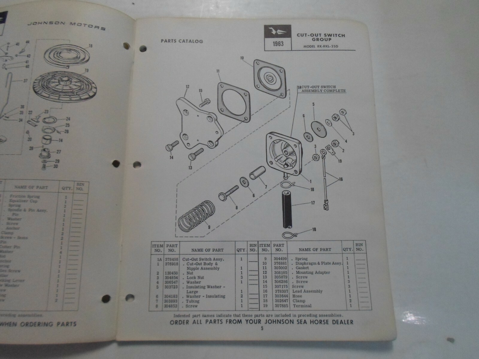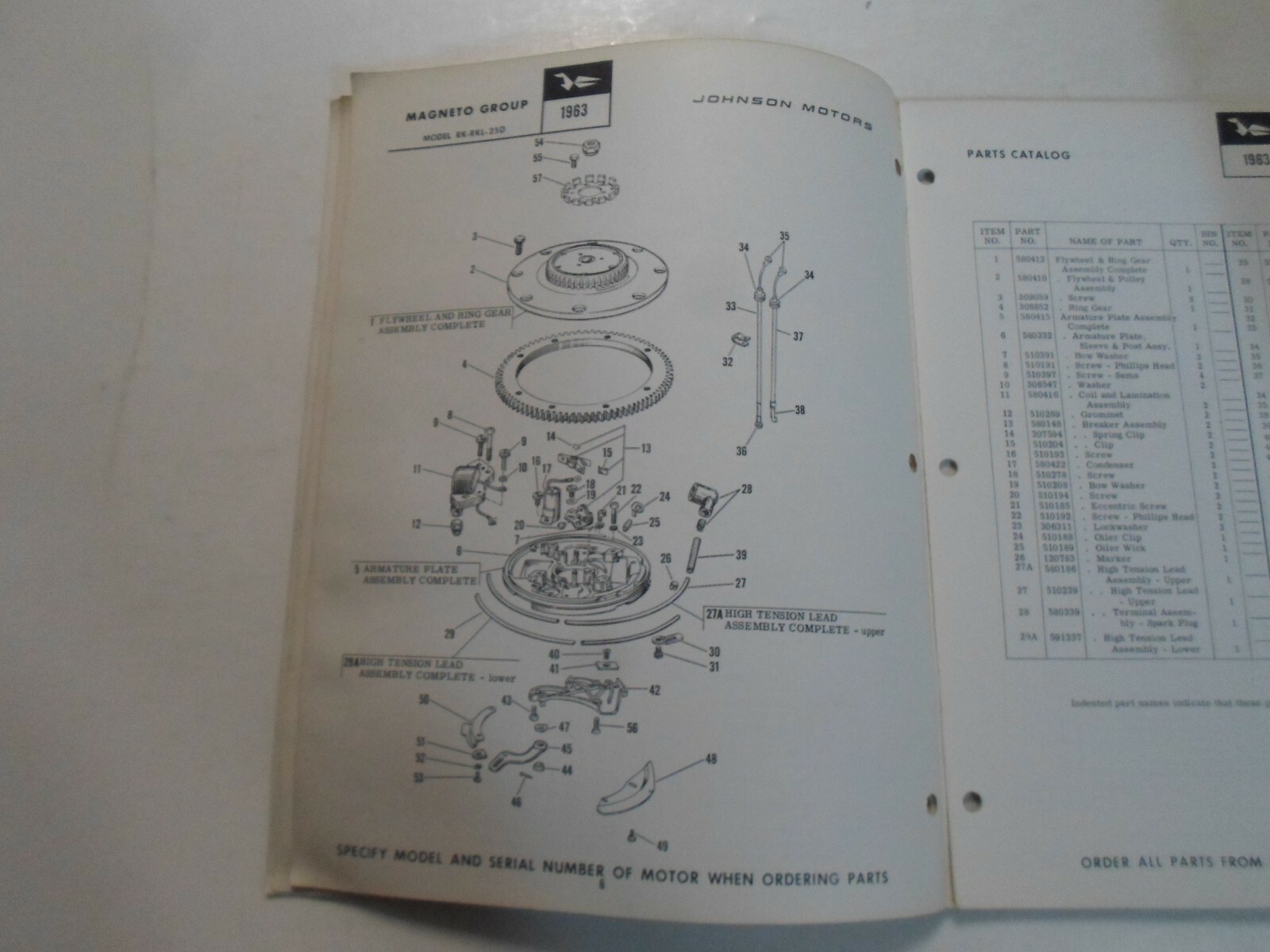 1963 Johnson 40 HP Mare Cavallo Modelli RK Rkl 25D Electramatic Parti Catalog