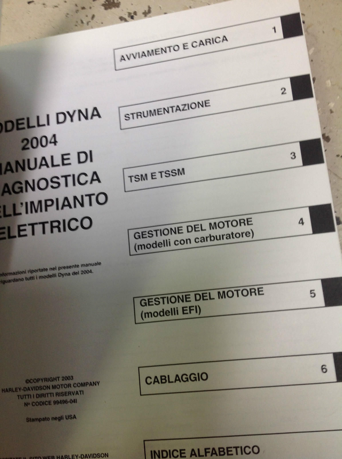 PRINTED IN ITALIAN 2004 HARLEY DAVIDSON DYNA MODELS ELECTRICAL DIAGNOSTIC MANUAL