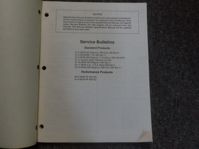 1991 Mercruiser Stern Drives Inboards Service Bulletin Specifiche Manuale