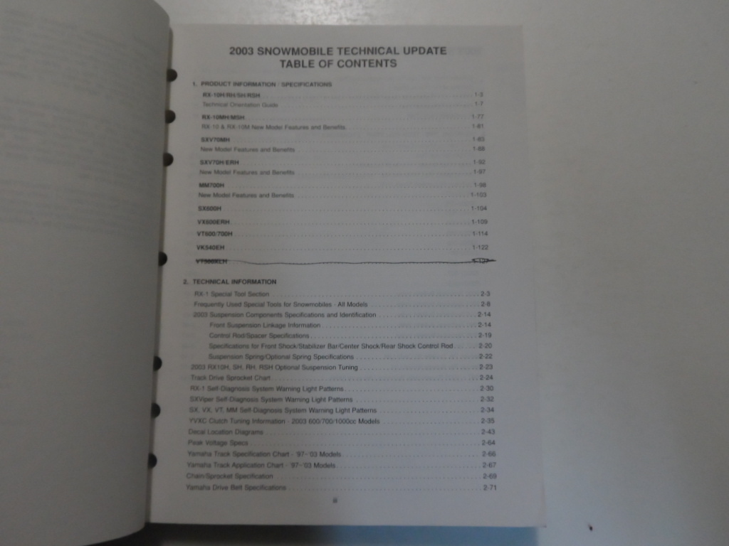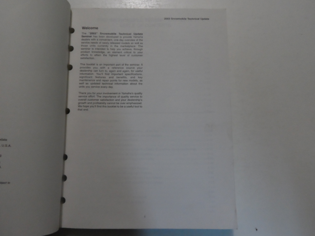 2003 Yamaha POWER LAUNCH SNOWMOBILE TECHNICAL UPDATE Manual FACTORY OEM BOOK 03