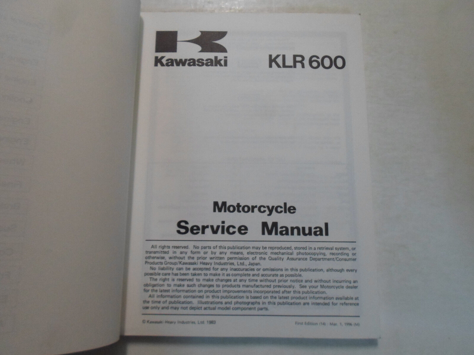 1984 KAWASAKI KLR600 SERVICE REPAIR SHOP MANUAL WORN STAINED MINOR DAMAGE