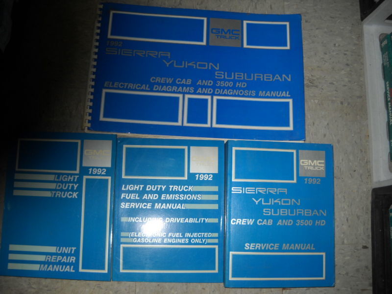 Factory 1992 GMC Sierra/Yukon/Suburban/Crew Cab e Manuale di servizio HD 3500, Manuale di riparazione delle unita, Manuale di servizio al carburante ed emissioni e manuale di diagramma elettrico e diagnosi.