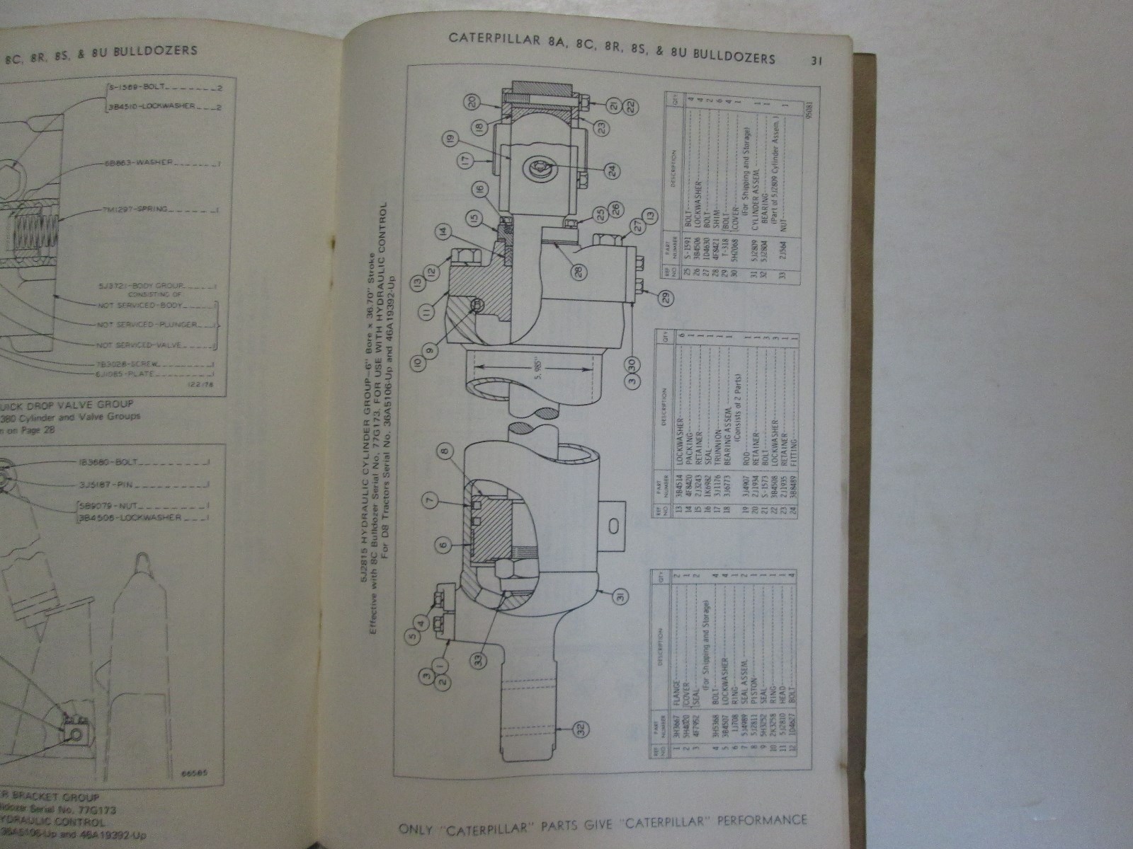 Caterpillar 8A 8S 8U 8C 8R Bulldozer Parte Libro 1969