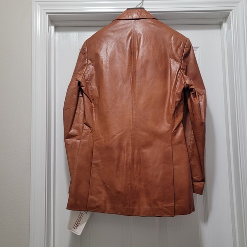 VTG New CHESS KING 70's Leather Blazer Jacket Brown Hipster Fight Club Men's 36