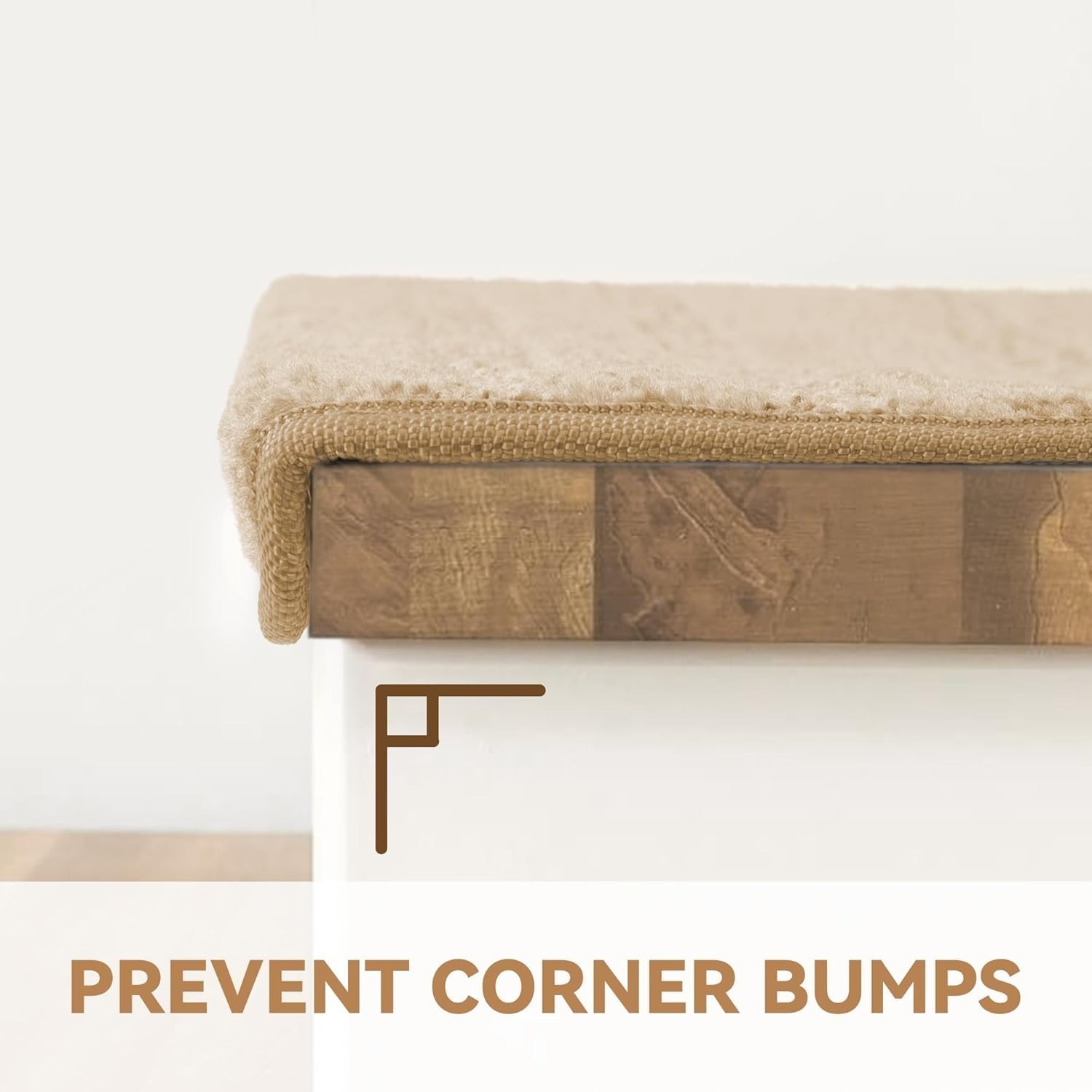 Bullnose Design, Greater Coverage ? Our stair treads indoor feature bullnose edges to help prevent bumps and scrapes. Measuring 9.5 x 32 inches, these stair runner offer a larger protection area, keeping family members safe and shielding your stairs from daily wear for lasting durability.