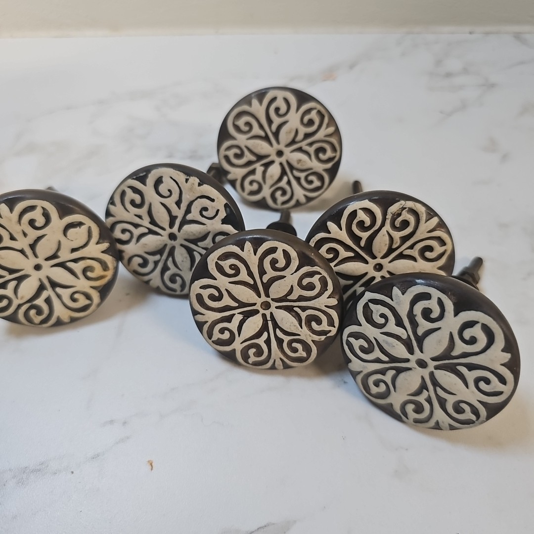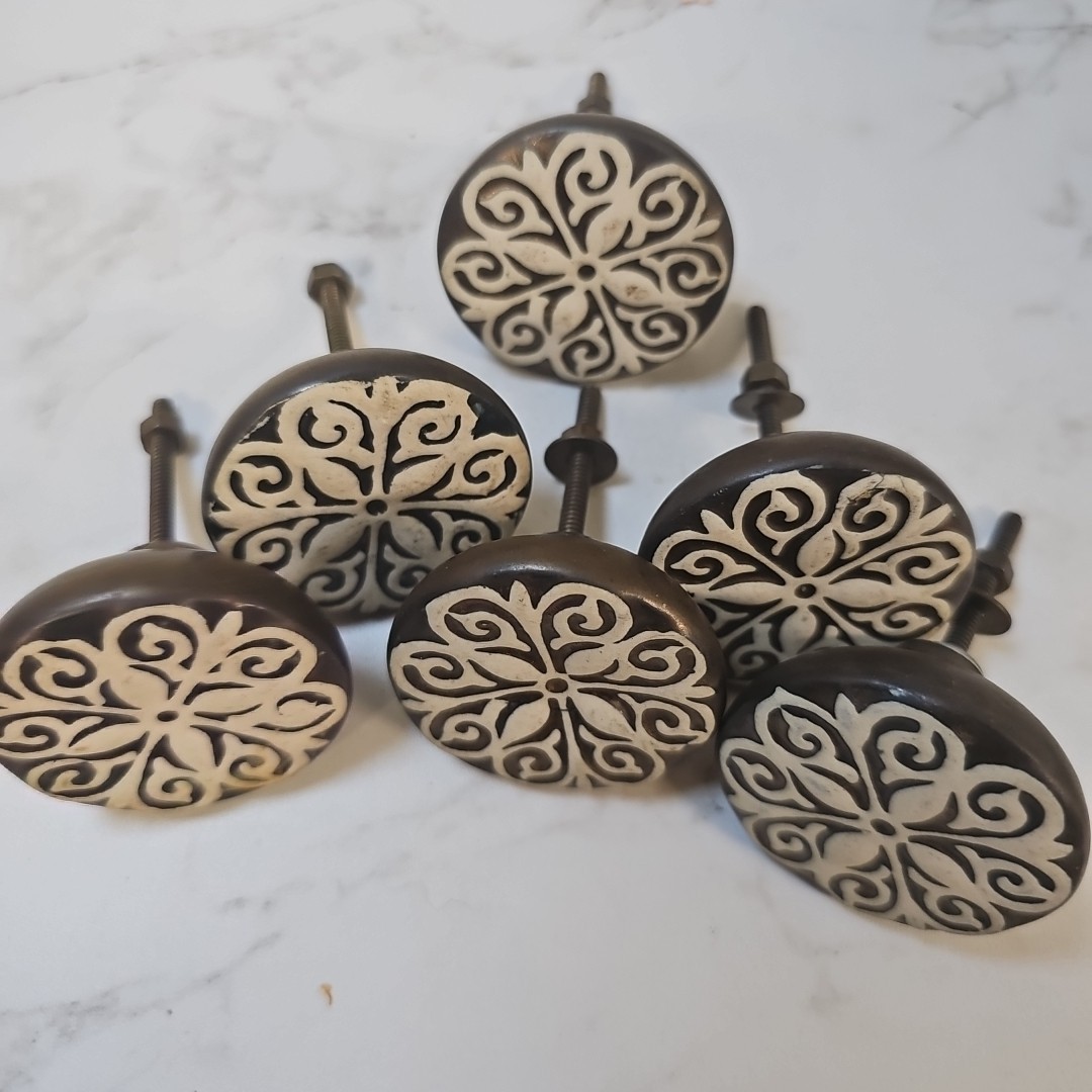 6 Vtg Brass Stamped Drawer Pulls With Hardware Large Round Vintage Knobs