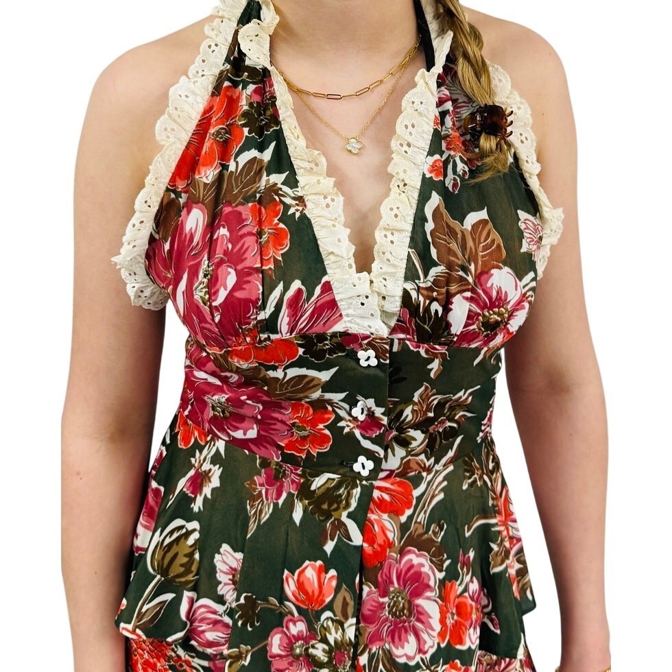 Vtg 70s Green Floral Slinky Halter Top Pant and 25 similar items