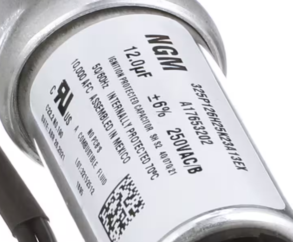Restore peak electrical performance to your refrigerator with the Frigidaire A17653202 (325P126H25K23A13EX) Capacitor. This genuine OEM component provides essential power regulation to compressor and fan motors, ensuring consistent cooling and efficient operation. Designed to handle up to 250 volts at 12.0 microfarads, it supports reliable startup and stable cycling in modern refrigeration systems.