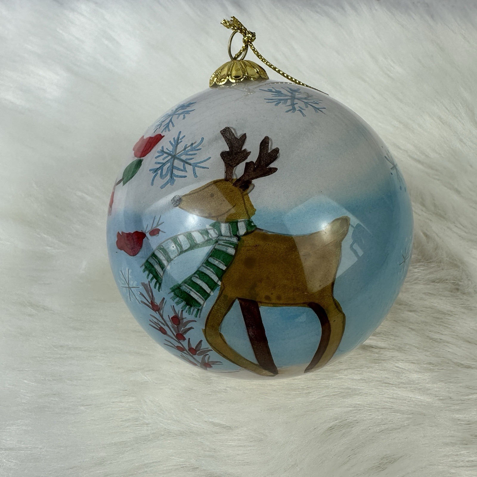 Pier One Li Bien Snowman Santa Reindeer Hand Painted Glass Christmas Ornament