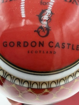 RARE HALCYON DAYS GORDON CASTLE ANTLER TRELLIS Porcelain Ball Red Ornament