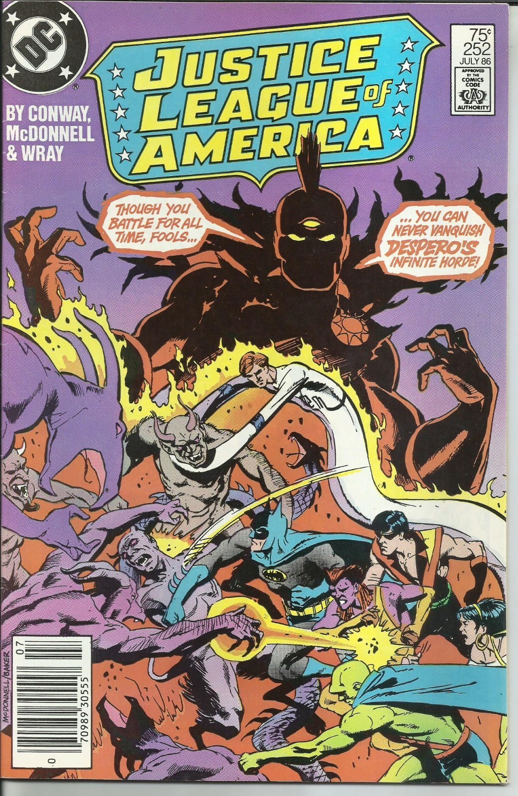 *Can Batman lead the League to victory against Despero and his infinite horde? Part 2 of 4, continued next issue. Written by Gerry Conway, with art by Luke McDonnell and Bill Wray. Cover by McDonnell and Kyle Baker.